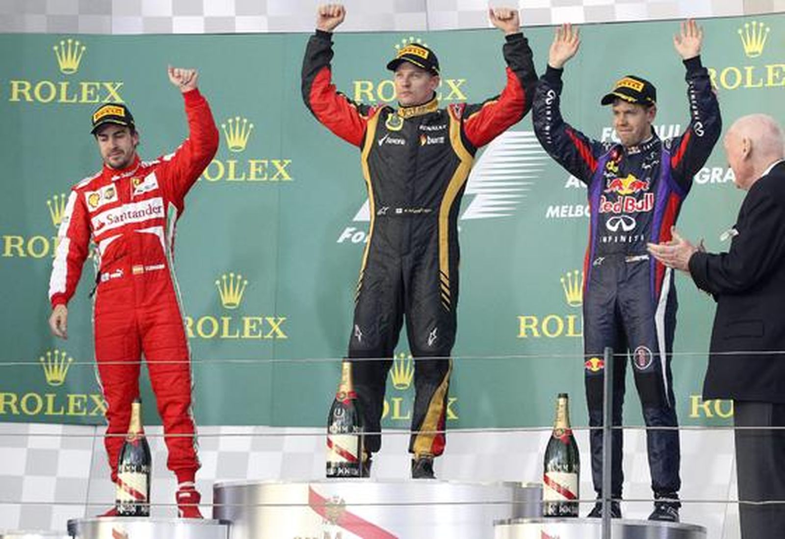 Alonso, doble campeón mundial (2005 y 2006, con Renault), acabó en segunda posición la carrera disputada en el circuito semiurbano de Albert Park, en Melbourne, en la que Kimi, campeón en 2007 -con Ferrari-, logró su vigésima victoria en F1 y en la que el ganador del título los últimos tres años, el alemán Sebastian Vettel (Red Bull), fue tercero, tras haber arrancado desde la 'pole'.