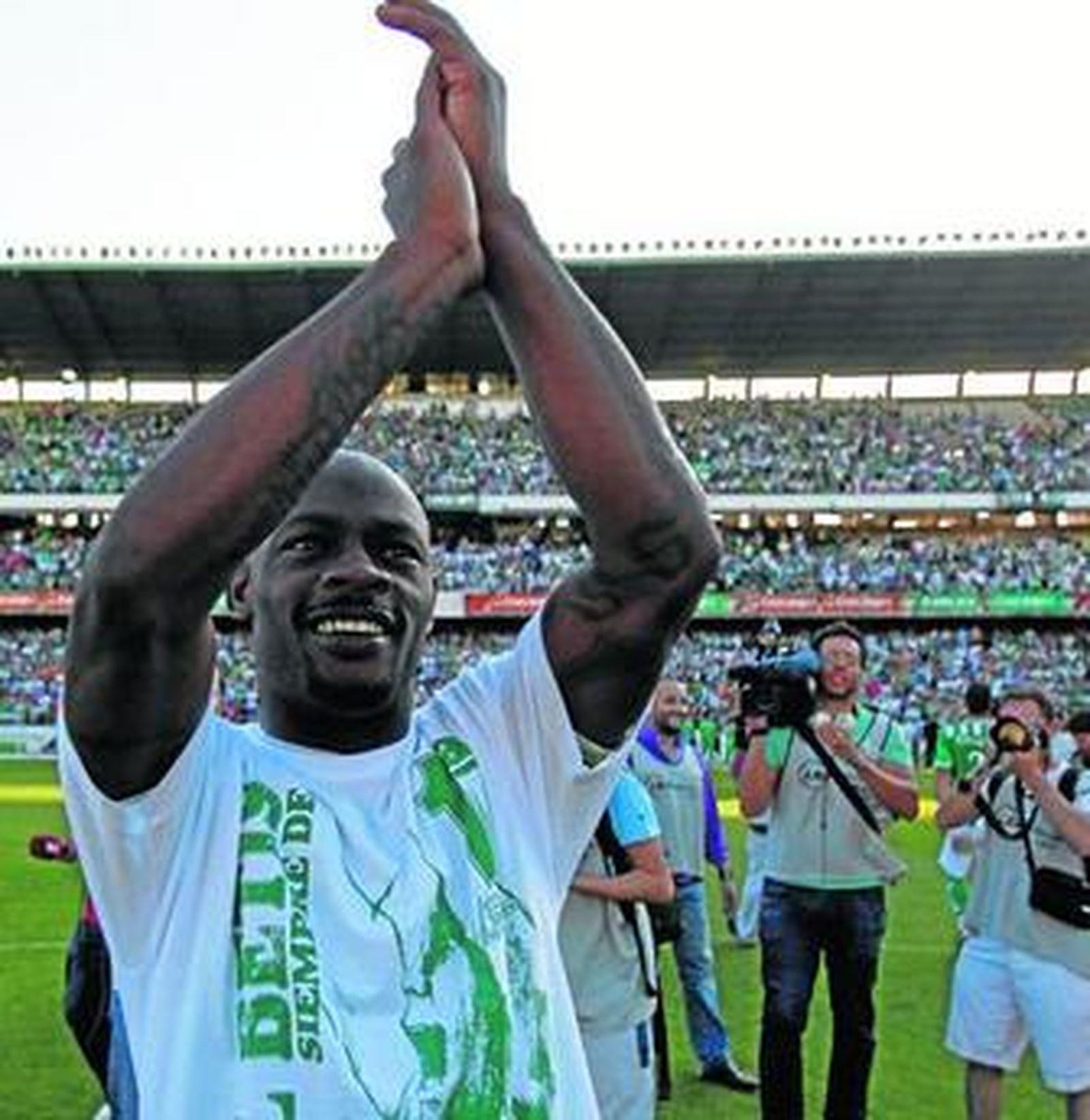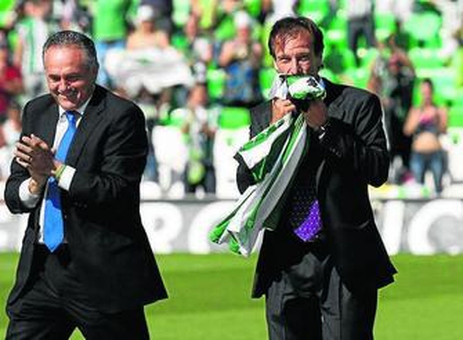 Fue, entonces, cuando toda la plantilla, con Pepe Mel al frente y escuchando eso de "¡Pepe Mel, Pepe Mel, Pepe Mel!", dio la vuelta de honor agradeciendo a la afición el apoyo dado a lo largo de la temporada, y en especial al 26 del Betis, Miki Roqué.