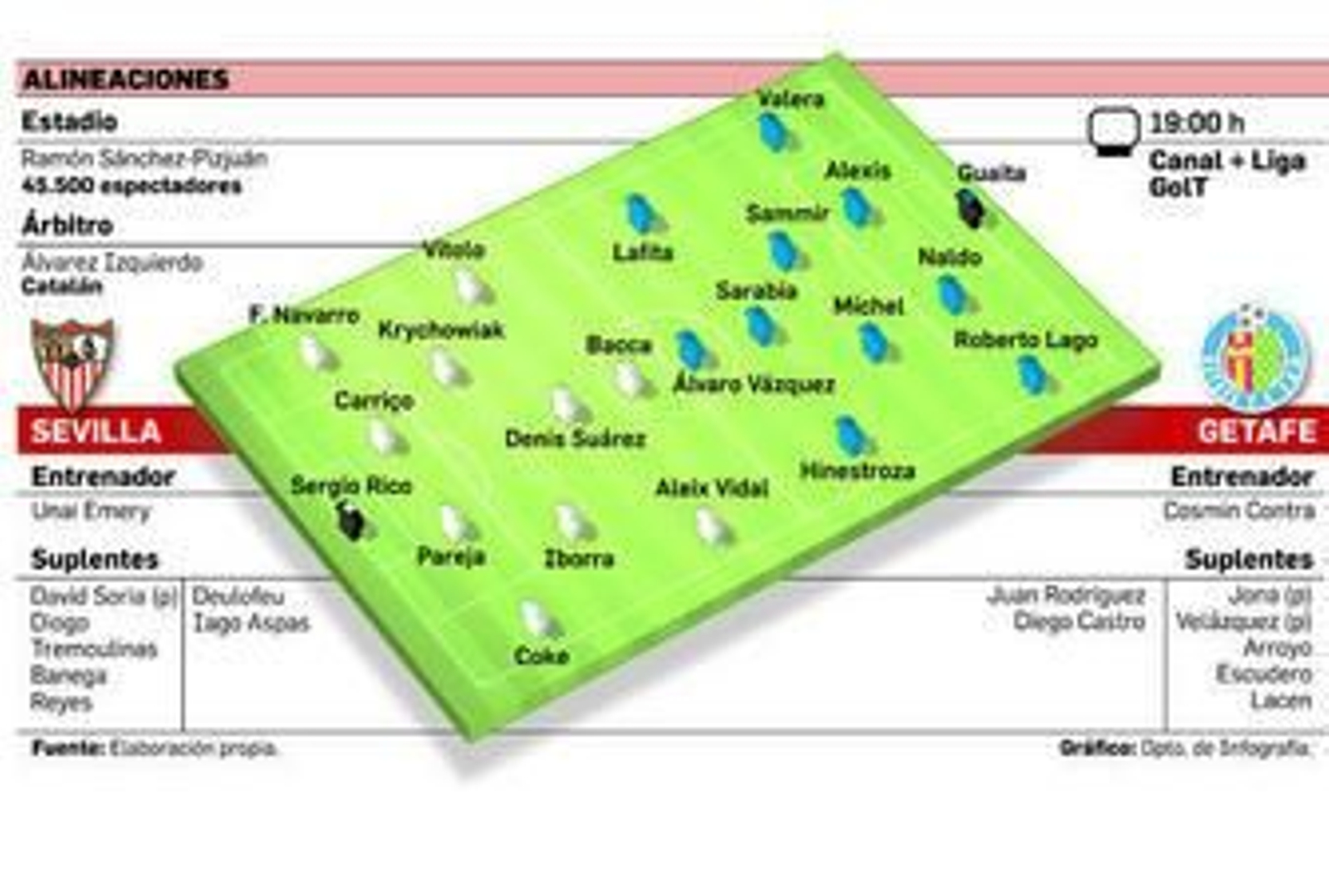 Llega el Getafe y el Sevilla prepara su activación máxima para un mes cargadito que tendrá su siguiente posta el jueves en el estreno del torneo del que es vigente campeón con la visita del Feyenoord. Pero eso será la Europa League y a los de Emery primero se les debe examinar por lo que hagan hoy en su segunda comparecencia en el Sánchez-Pizjuán. Nofue muy afortunada la primera con ese empate ante el Valencia cuando parecía que la situación estaba controlada, pero siete días después el nuevo Sevilla dio el do de pecho en Cornellà para que el parón no fuera más largo de las dos semanas que marcaba el calendario. Y ese tiempo, que tuvo la medida justa gracias al triunfo sobre el Espanyol y que pasó entretenido entre el runrún que el obligado debut de Sergio Rico estaba claro que iba a protagonizar, ha servido a Emery para avanzar en el acoplamiento de los nuevos aun sin poder contar con toda la plantilla por la marcha de los internacionales. También han sido dos semanas en las que había que incidir en la preparación del elegido para defender la portería sevillista ante las bajas por lesión de Beto y Barbosa. Preparación para la que bastaba con reforzar los conceptos y, sobre todo, la confianza en el futbolista.