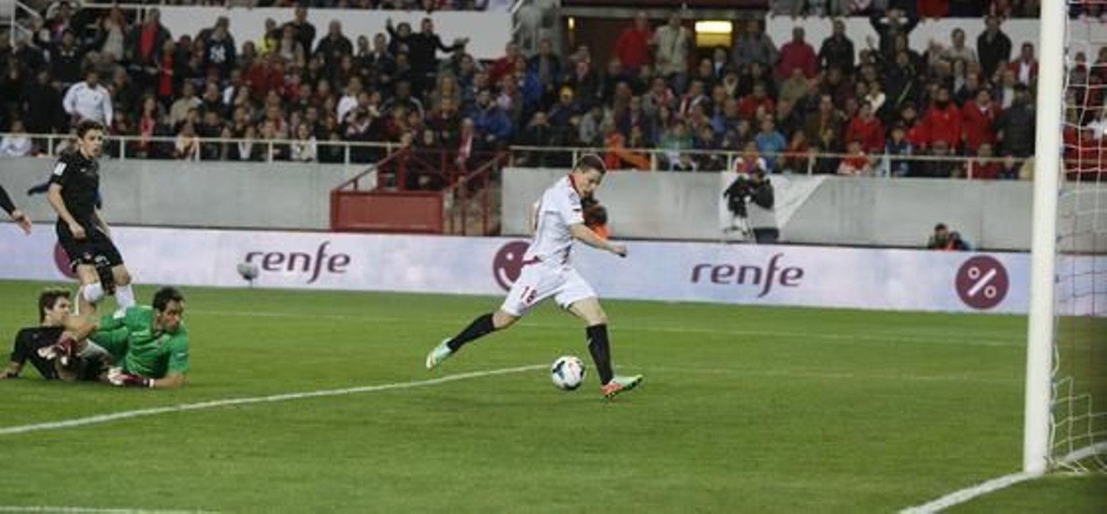 El Sevilla había conseguido ponerse por delante y se acarcaba a la adicción de todo el botín en juego a su casillero clasificatorio. Cabían dudas incluso de si sería capaz de defender durante esos casi 20 minutos que quedaban con tantos delanteros en el campo. Pero sí, el fútbol es así de imprevisible y el Sevilla se hizo fuerte con tantos delanteros, mantuvo el balón suficientemente alejado de Beto como para que éste no pasara por ninguna situación de apuro y hasta fue capaz de lanzar nuevas contras con cierta calidad a través de Carlos Fernández, Figueiras, Bacca y Gameiro como destinatario final.