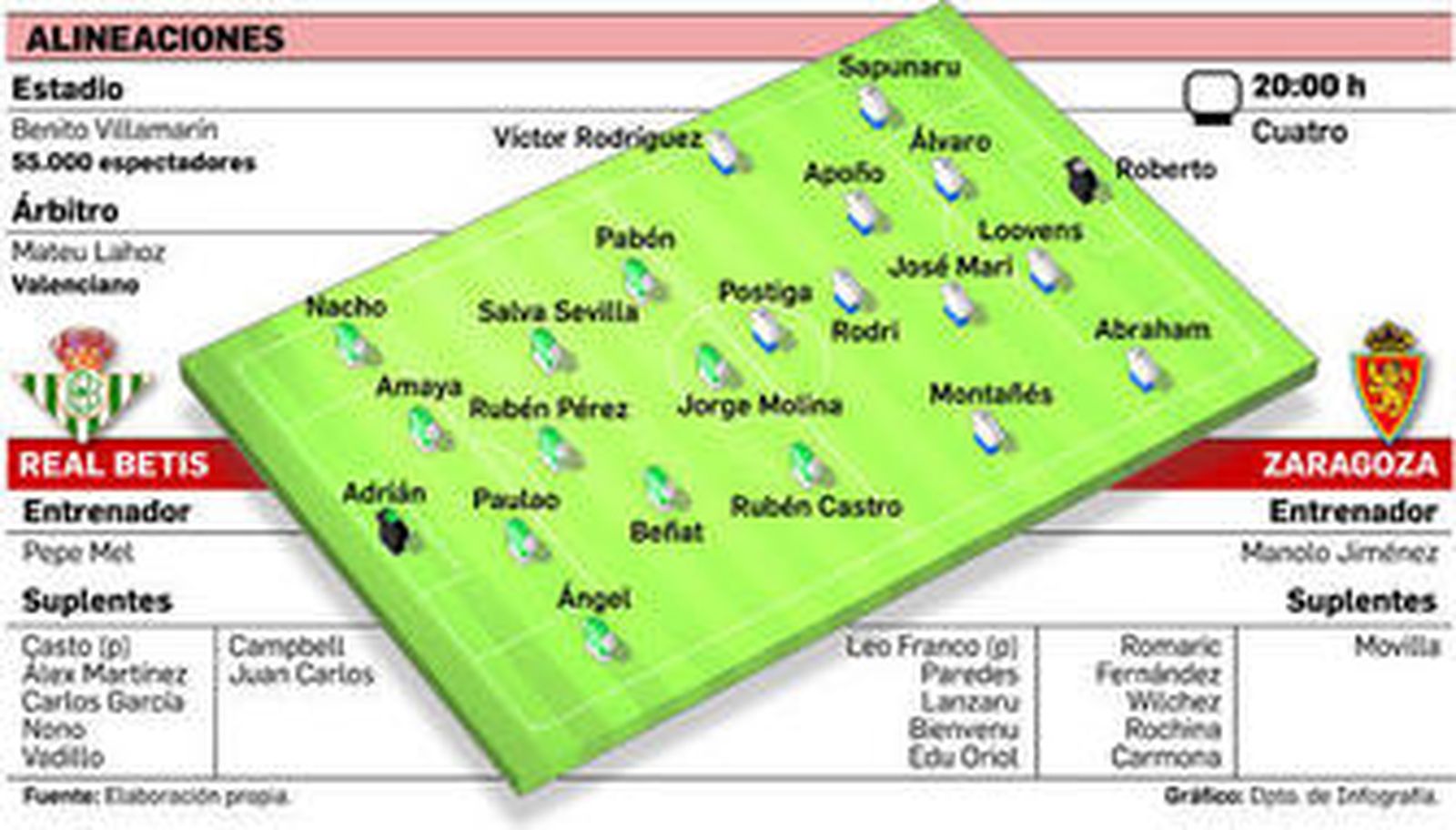 Es el técnico madrileño una especie de Pepito Grillo para sus huestes. Se erige habitualmente en la conciencia de un grupo sano al que sabe regañar en privado y disculpar ante sus fieles para que el beticismo los disfrute. Si con la pluma demuestra su gusto y su eficacia, con la oratoria no se queda atrás este nuevo mesías verdiblanco obligado a apretar los puños y morderse la lengua cuando observa que el alumnado olvida su catecismo. Son ya mil días con un mandamiento por encima de cualquier otro, tan sencillo como que para ganar no hay premisa más indispensable que saltar al césped con las mismas ganas que el rival, dándolo todo desde el tañido inicial, sin reservas, con ansias, con coraje, con ganas... Justo a lo que hoy se supone que apelará en el otro rincón un bético de niño que abrazara luego la fe sevillista y que atiende por Manolo Jiménez. Si nadie duda de que el competente técnico de Arahal sabrá insuflar en su tropa los ánimos suficientes para afrontar una batalla en la que se juega la supervivencia, nadie puede pensar que Mel no hará lo propio con su prole. Es, por tanto, un partido para hombres, desprovisto de muchos condicionantes incluso futbolísticos. Y, por ello, se da casi por seguro que saldrá vencedor el que más ardor ponga en la pelea. Si, como propugna su entrenador, los heliopolitanos son capaces de igualar este aspecto primordial, entonces jugar al amparo de su grada, su mayor calidad, el clima, los hábitos, el aparente sosiego que debe darles su holgada clasificación... Todos esos factores que también suman sí serán entonces decisivos. Si el Zaragoza es capaz de poner un ápice más de ganas sobre el tapete, todo lo anterior no valdrá de nada.