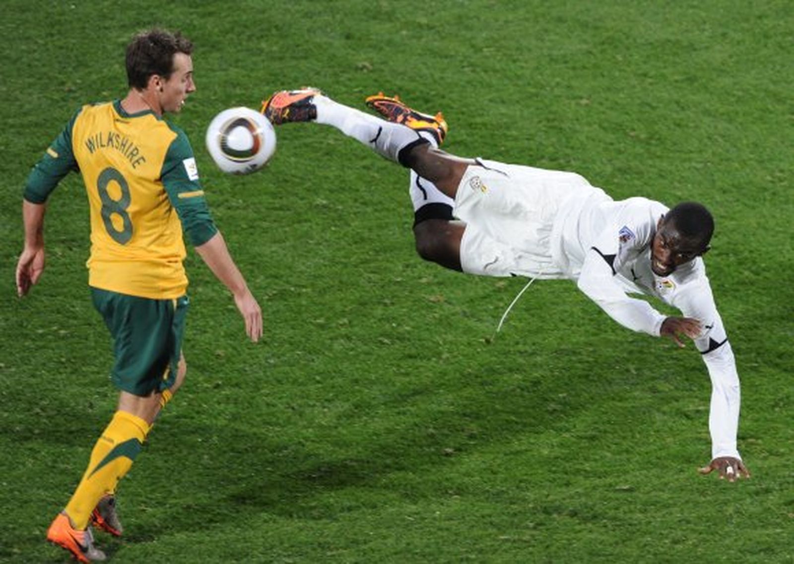 Poco le duraría la alegría a los australianos, ya que pocos minutos después Kewell salvó un gol bajo palos con la ayuda de su mano. Penalti, expulsión y ocasión inmejorable para Gyan, que al igual que ya hiciera ante Serbia, transformó la pena máxima con total seguridad.