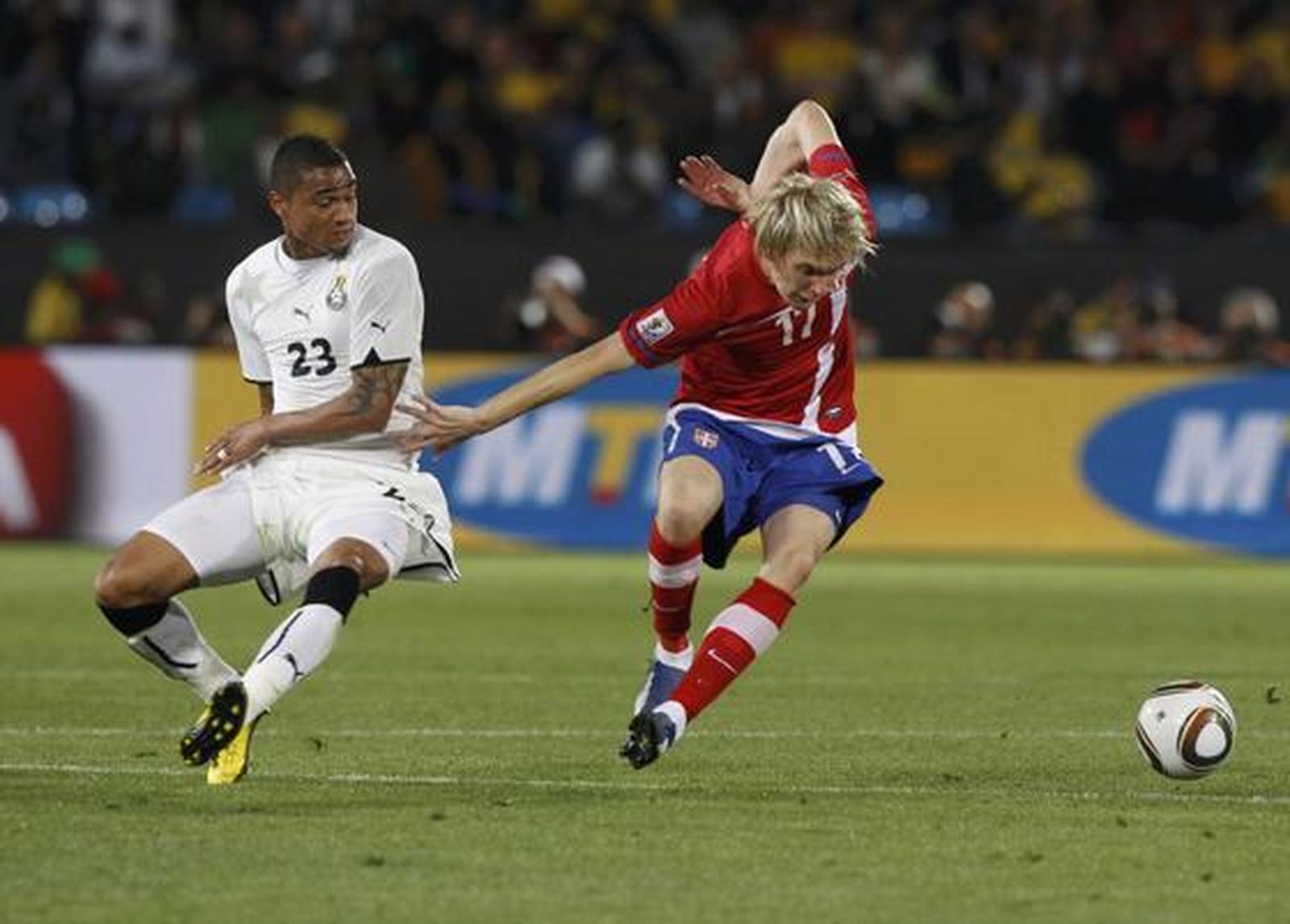 Una absurda mano del serbio Kuzmanovic provoca un penalti que pone en bandeja la victoria a Ghana cuando Serbia jugaba con diez.