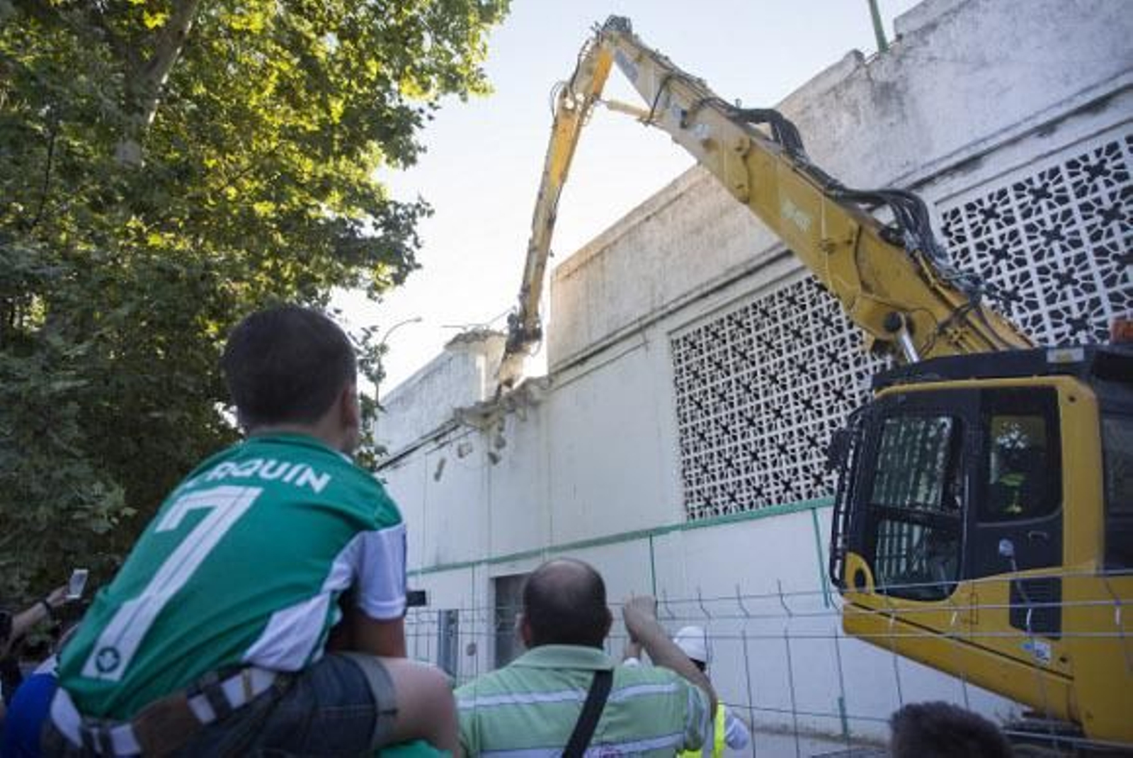 Con Haro y el vicepresidente, José Miguel López Catalán, a la cabeza, hasta el director deportivo, Miguel Torrecilla, y el entrenador, Gustavo Poyet, se acercaron a esa zona del estadio para seguir de cerca la actuación del conocido como Diplodocus, la grúa que inició el derribo por el antiguo palomar.