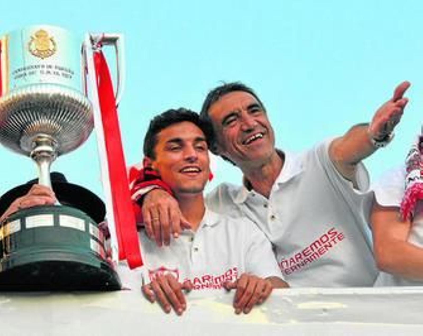 Desde José María del Nido hasta Antonio Álvarez, pasando por Palop, Kanoute, Jesús Navas o Diego Capel, todos quisieron devolver a los miles de aficionados concentrados en el centro de Sevilla el apoyo durante un curso calificado por los protagonistas como el más duro de los últimos años. El problema de corazón de Sergio Sánchez, lesionados de gravedad como Kone o Dragutinovic, lesionados de larga duración como Fazio, Acosta, el propio Squillaci, Perotti, la destitución de Jiménez, el cansancio de una plantilla que ha tenido que sacar fuerzas de flaqueza para aguantar con una fe formidable hasta el último segundo, la baja inesperada de Luis Fabiano para jugar la final de Copa y, por último, el agravio de la RFEF de llevar este partido a Barcelona. Todo eso estaba detrás de los mensajes de los profesionales y en las mentes de los aficionados. Y por eso unos y otros se dedicaron loas en medio del éxtasis colectivo.