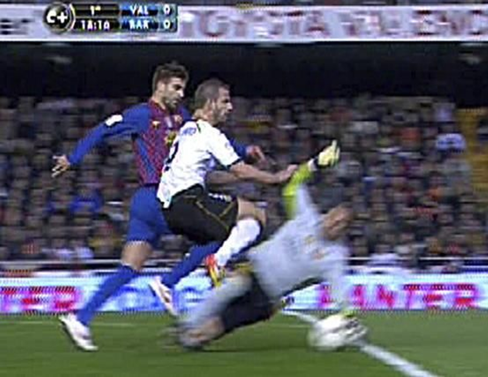 Josep Guardiola, entrenador del Barcelona, afirmó que le habían dicho que José Manuel Pinto, el portero de su equipo, había tocado el balón con las manos fuera del área en la primera parte del encuentro ante el Valencia y admitió que esta circunstancia pudo haber condicionado el partido.