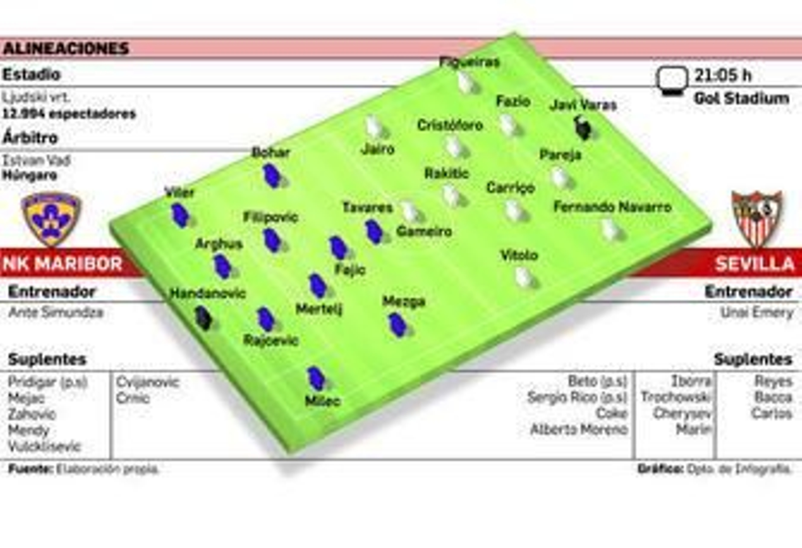 Tendrá Emery que domeñar sus propias urgencias a la hora de refrescar al equipo y reservar parte de su batería de asalto para el Rayo. Y ante este panorama, se multiplican las especulaciones sobre los once sevillistas que hoy salten al pequeño estadio Ljudski (unos 13.000 espectadores). Lo único seguro es que retornará a la portería Javi Varas, el portero para la Liga Europa. Y no será mala ocasión para que el guardameta de Pino Montano se reivindique con vistas a la Liga, visto el irregular rendimiento que sigue ofreciendo Beto.