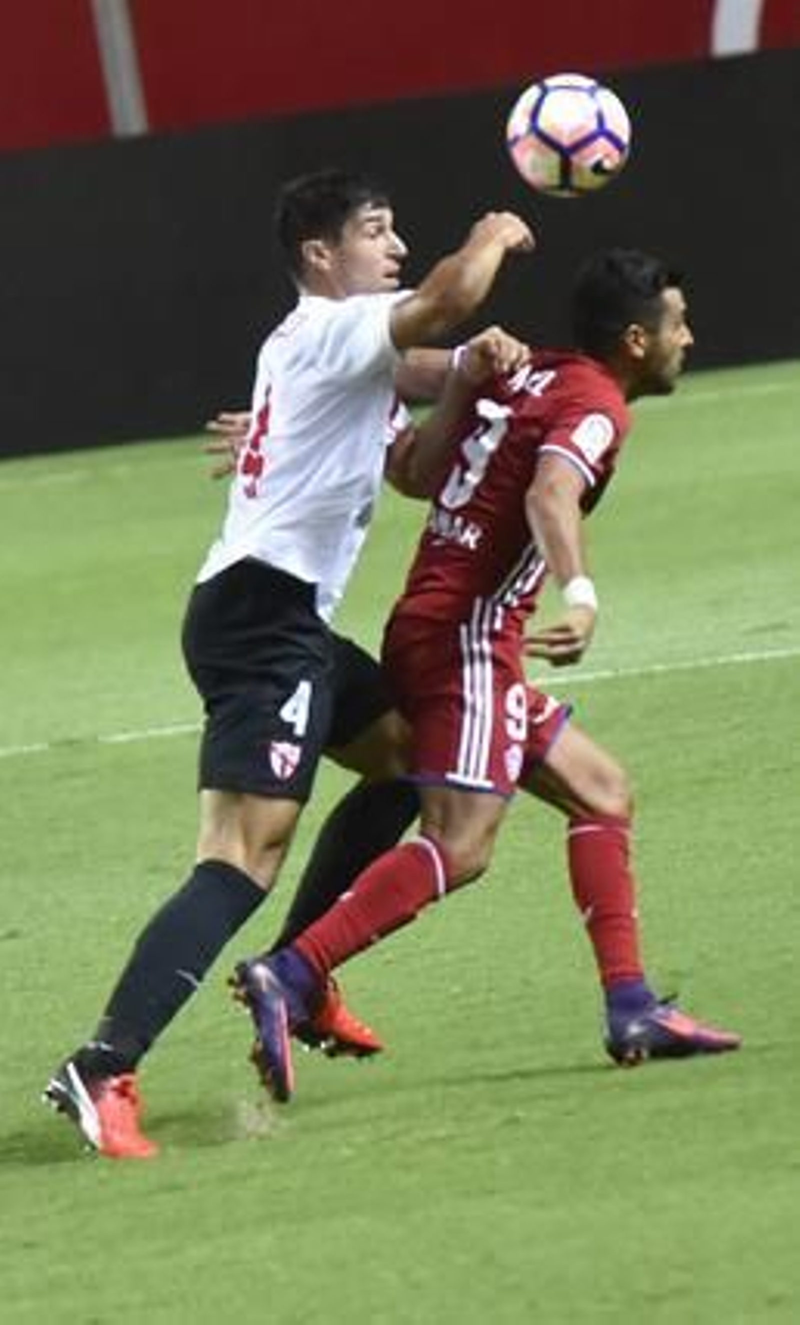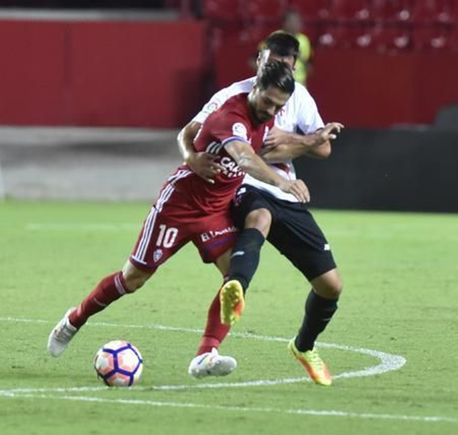 Porque por mucho que al Zaragoza lo acompañase el nombre, la historia y hasta el cartel de favorito, el filial sevillista, lejos de amilanarse, plantó cara desde el inicio, adelantando su presión para dejar claro a su oponente que no le resultaría nada fácil alcanzar la portería de Caro.
