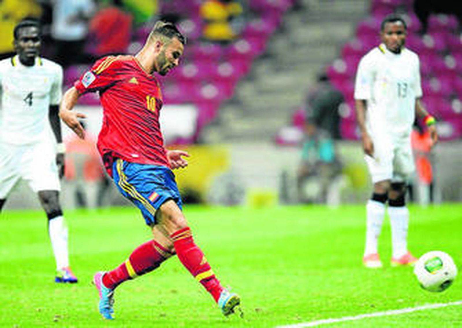 La selección española ganó a Ghana, con un solitario gol de Jesé, y se aseguró la presencia en los octavos de final. El combinado español pudo golear. Pero también pudo quedarse sin triunfo ante un rival que carecía de margen de error para sobrevivir en la competición, después de su derrota en la jornada inicial contra Francia.