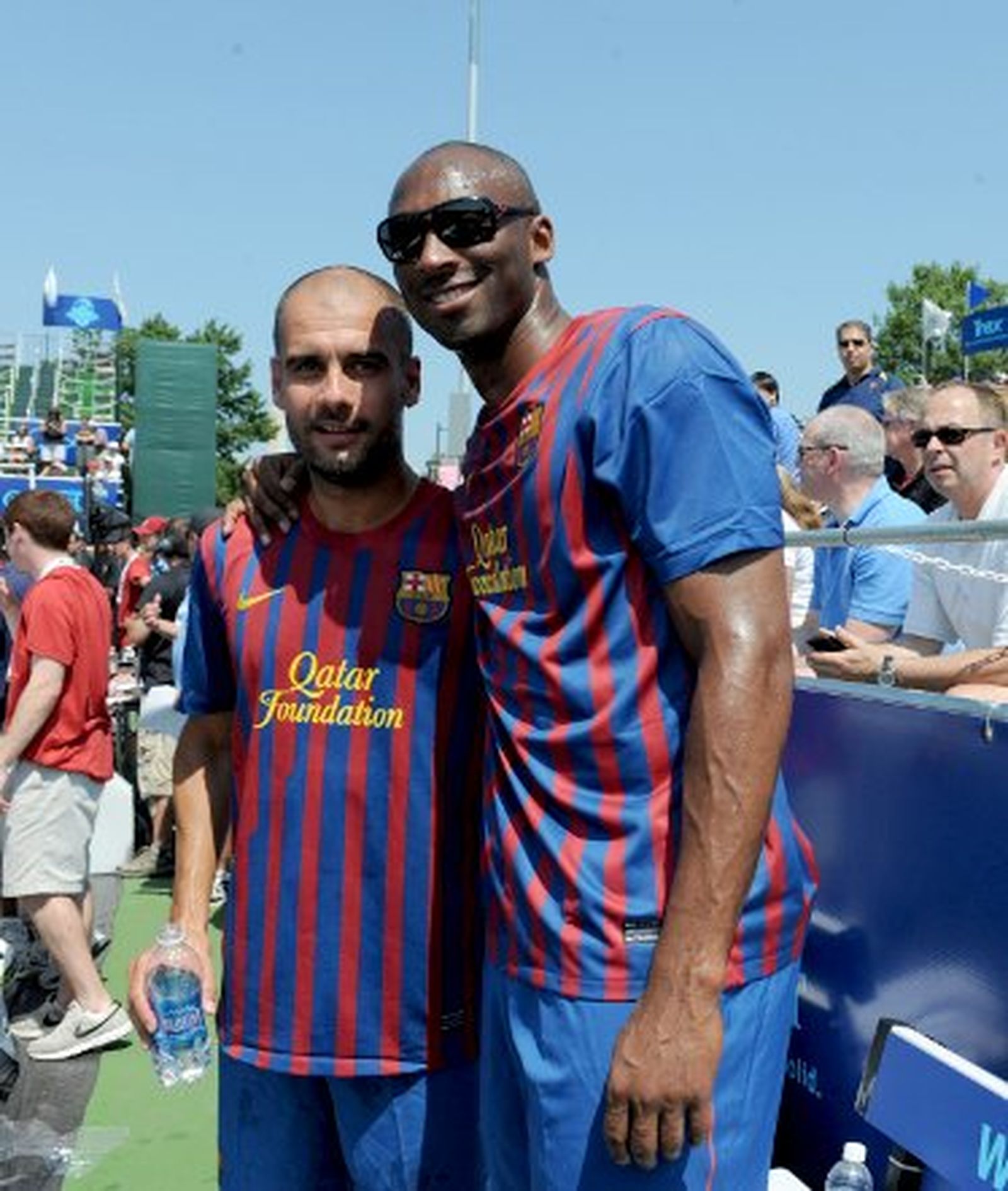 El escolta de Los Angeles Lakers Kobe Bryant y el entrenador azulgrana, Pep Guardiola, han compartido vestuario y camiseta, la azulgrana, en un amistoso benéfico organizado por Mia Hamm, embajadora del Barcelona en Estados Unidos, donde Bryant señaló que es una sensación "fantástica" la de vestir la camiseta blaugrana.