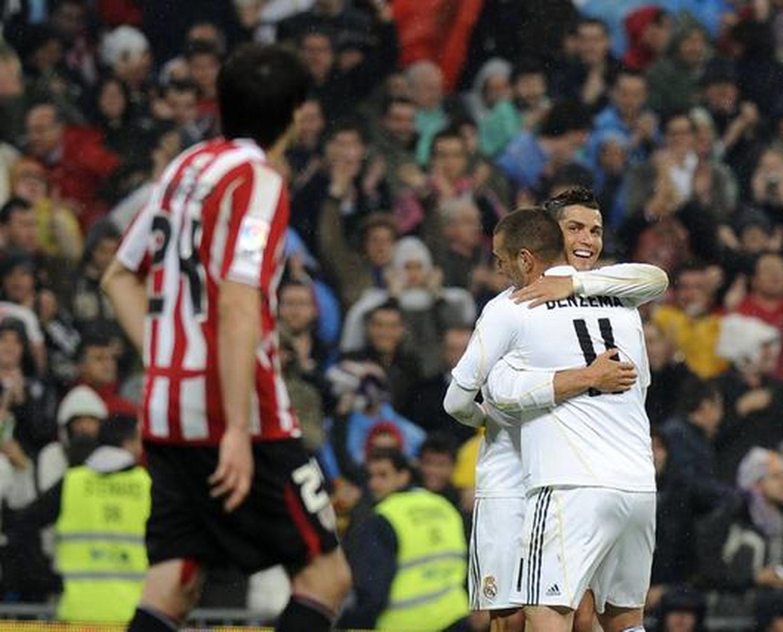 Buscaban los jugadores del Real Madrid en la celebración buenas noticias de sus compañeros desde el banquillo. No las había. Mucho menos instantes después con el gol de Bojan. La desconexión total blanca llegaba y el Athletic lo aprovechó. Avisó Koikili, con un disparo que sacó con las piernas Casillas.