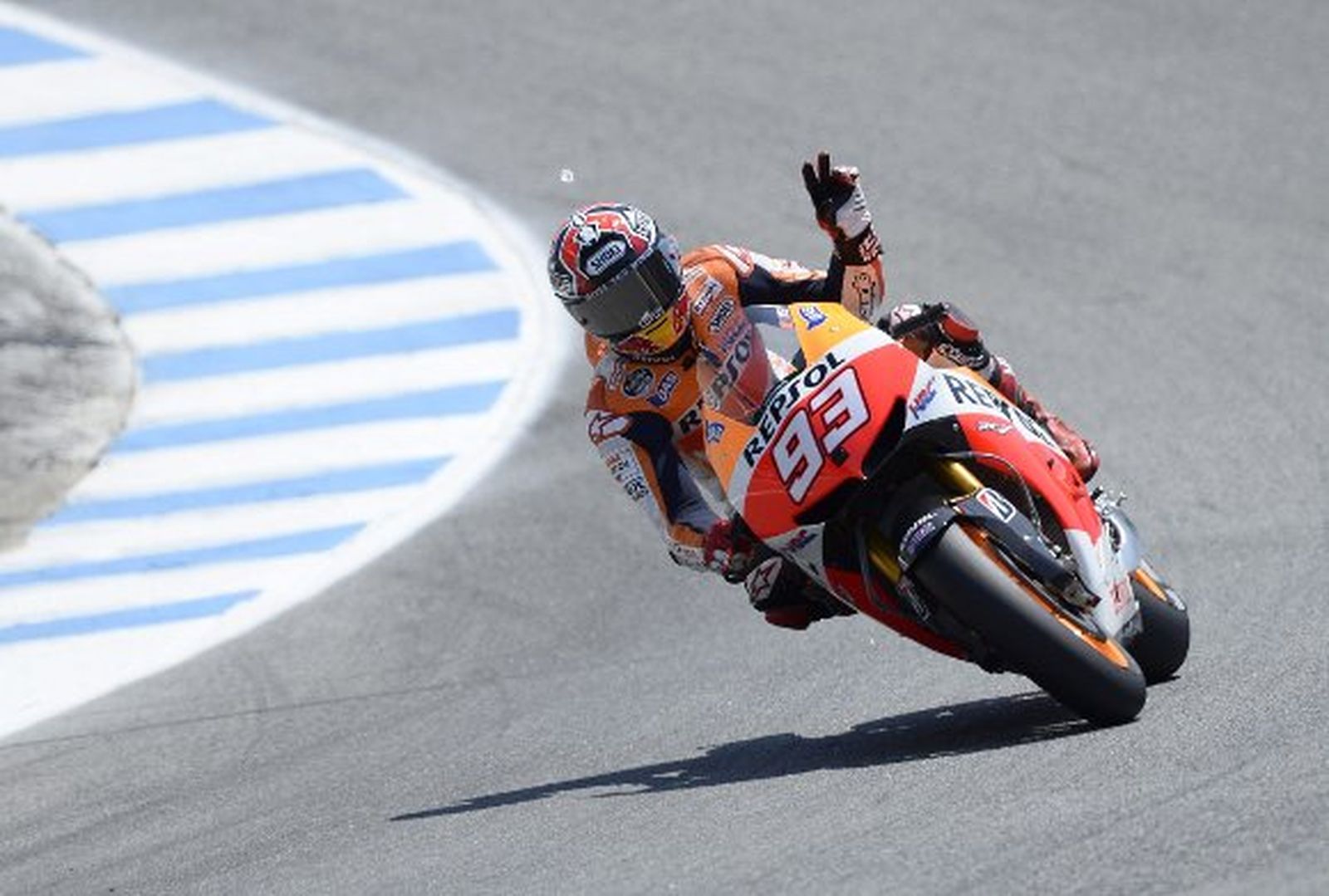 El español Marc Márquez (Repsol Honda RC 213 V) protagonizó un espectacular triunfo en el Gran Premio de Estados Unidos que se disputó en el circuito de Laguna Seca, en California, en donde se ha convertido en el primer piloto en la historia que vence en el año de su debut en la categoría reina. Márquez ha protagonizado un nuevo récord al vencer como debutante en un circuito tan complicado como en el de Laguna Seca, en donde ni siquiera lo pilotos locales había logrado nunca ese hito y, además, arrebata el récord de ser el más joven piloto en conseguir dos victorias consecutivas, Alemania y Estados Unidos, con 20 años y 154 días. El anterior récord lo tenía desde 1983 el estadounidense Freddie Fast Spencer que ganó las carreras de Suráfrica y Francia con 21 años y 104 días.