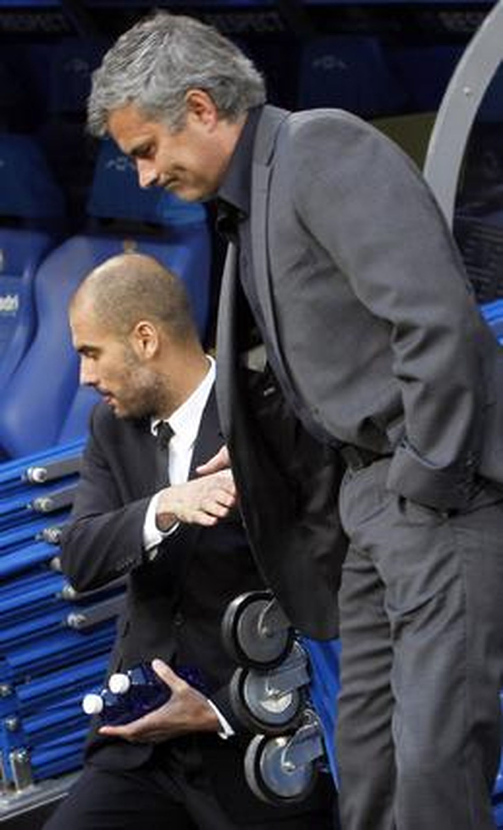 El entrenador del Barcelona, Josep Guardiola, calificó irónicamente a su rival, José Mourinho, como el "puto amo" en las salas de prensa. Era su respuesta a las críticas del portugués, que le reprochó quejarse hasta de los aciertos arbitrales. "¿Por qué?", se preguntó Mourinho después del partido, buscando respuestas a la expulsión de Pepe por roja directa cuando el marcador aún estaba 0-0.