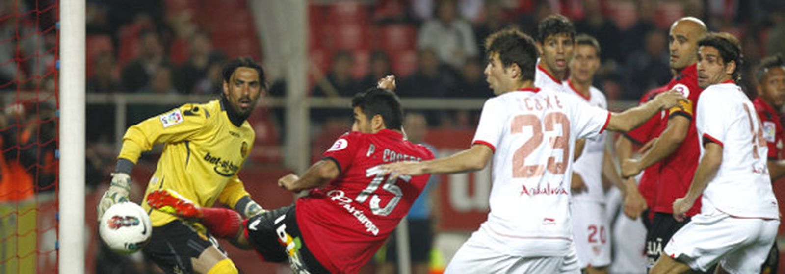 El Sevilla había sufrido hasta el descanso por la sencilla razón de que tenía enfrente a un equipo made in Caparrós. Ni siquiera le había hecho falta al Mallorca disponer de las individualidades de las que gozan los blanquirrojos, les bastaba con el orden, con presionar cada balón como si fuera el último, con hostigar en definitiva al que es mejor cuando tiene el balón con comodidad. Los anfitriones estaban incómodos, era visible, y hasta sufrieron algún susto en el epílogo de ese primer acto, pero volvieron a salir con las ideas claras. Estar seguros atrás, tratar de mover rápido y esperar a que Negredo o alguna otra individualidad se encargara de resolver en una acción puntual.