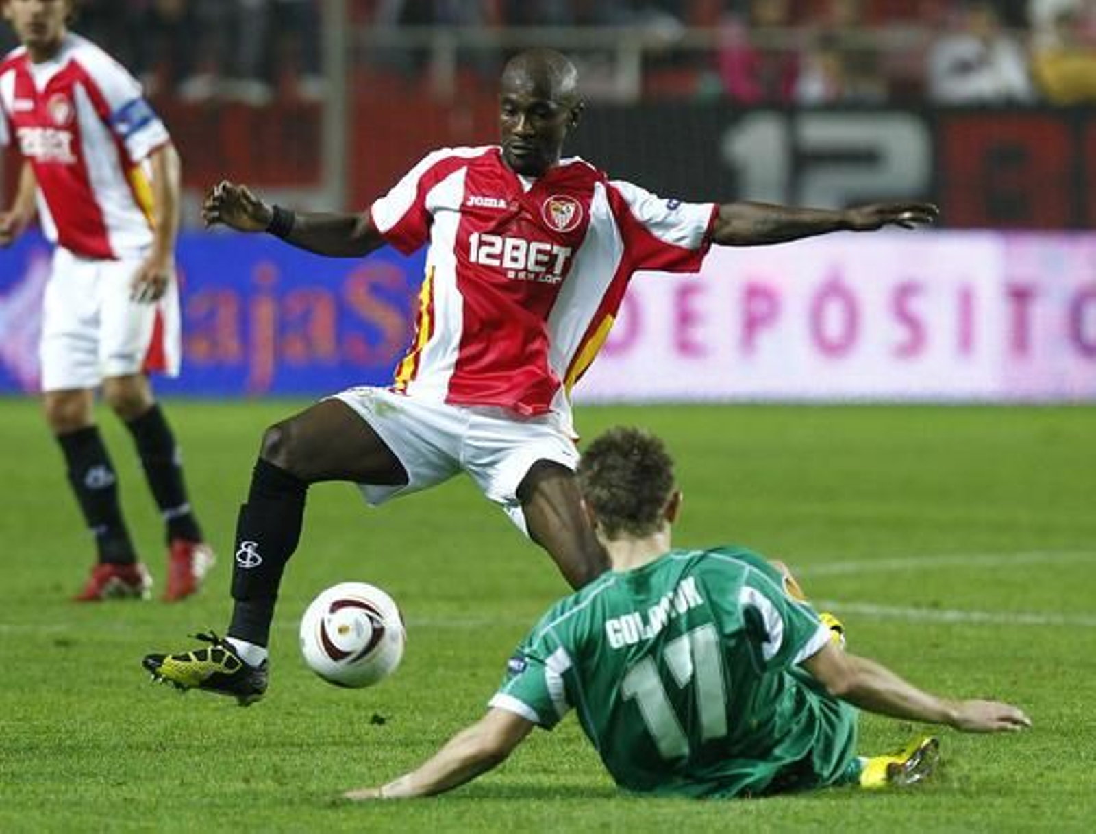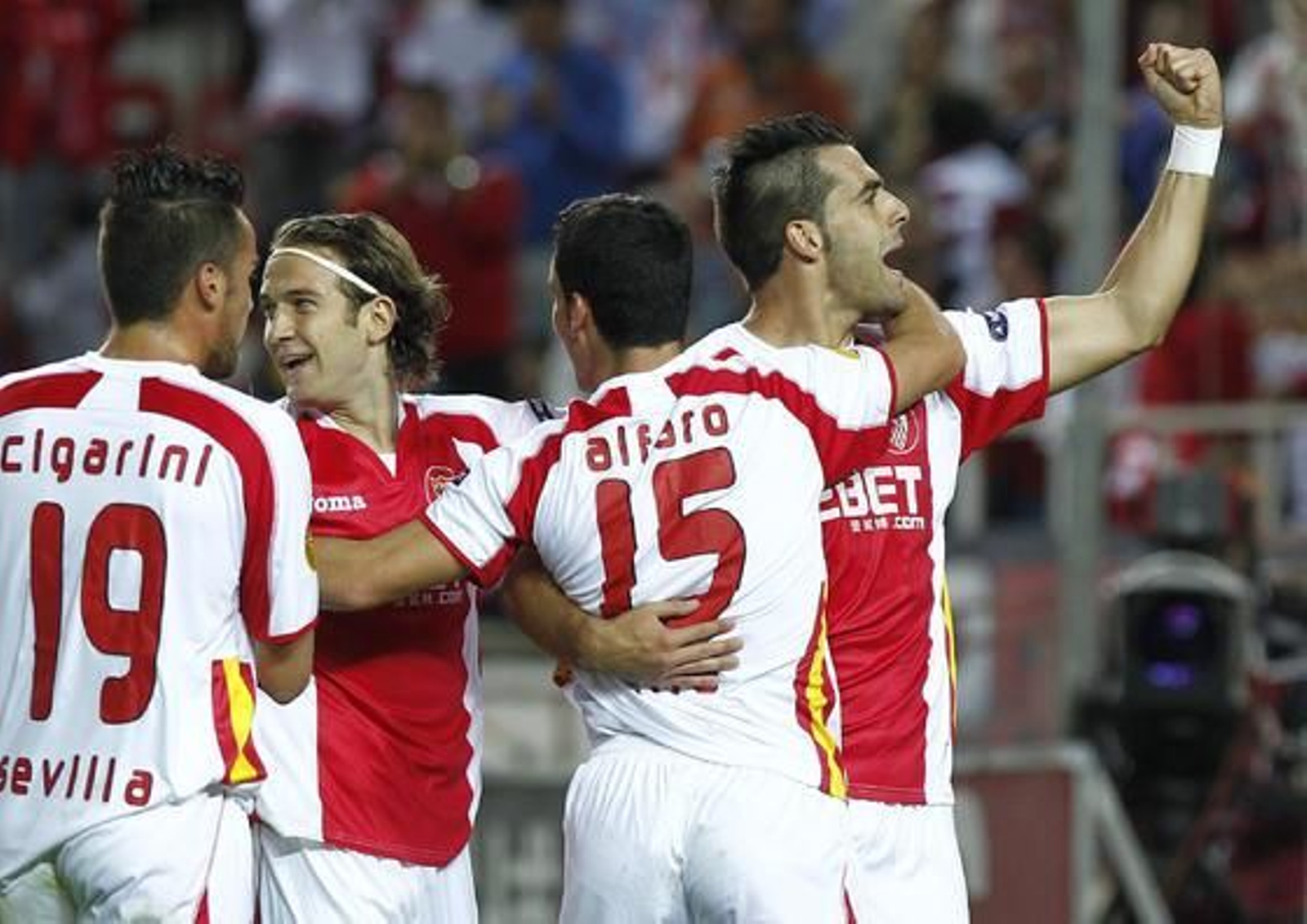 Y se resolvió del todo precisamente cuando se unieron dos constantes de ese arranque, la velocidad y el buen gusto de los sevillistas y las entradas con riesgo de lesión por parte del Karpaty. Con Fernando Navarro en la banda doliéndose de una patada a destiempo de Godwin, Cigarini cogió el balón y lanzó la falta de una manera bastante parecida a como lo suele hacer Cristiano Ronaldo. 2-0 en el marcador, la grada celebrando un tanto que merecía la pena verlo y el guión estaba escrito sólo a falta de rematarlo.
