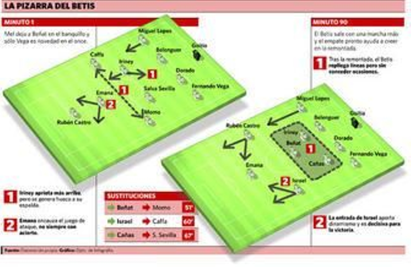 El Betis, con un esquema asimétrico por las cualidades de los jugadores, remonta por su espíritu · La entrada de Israel influye decisivamente en el resultado final