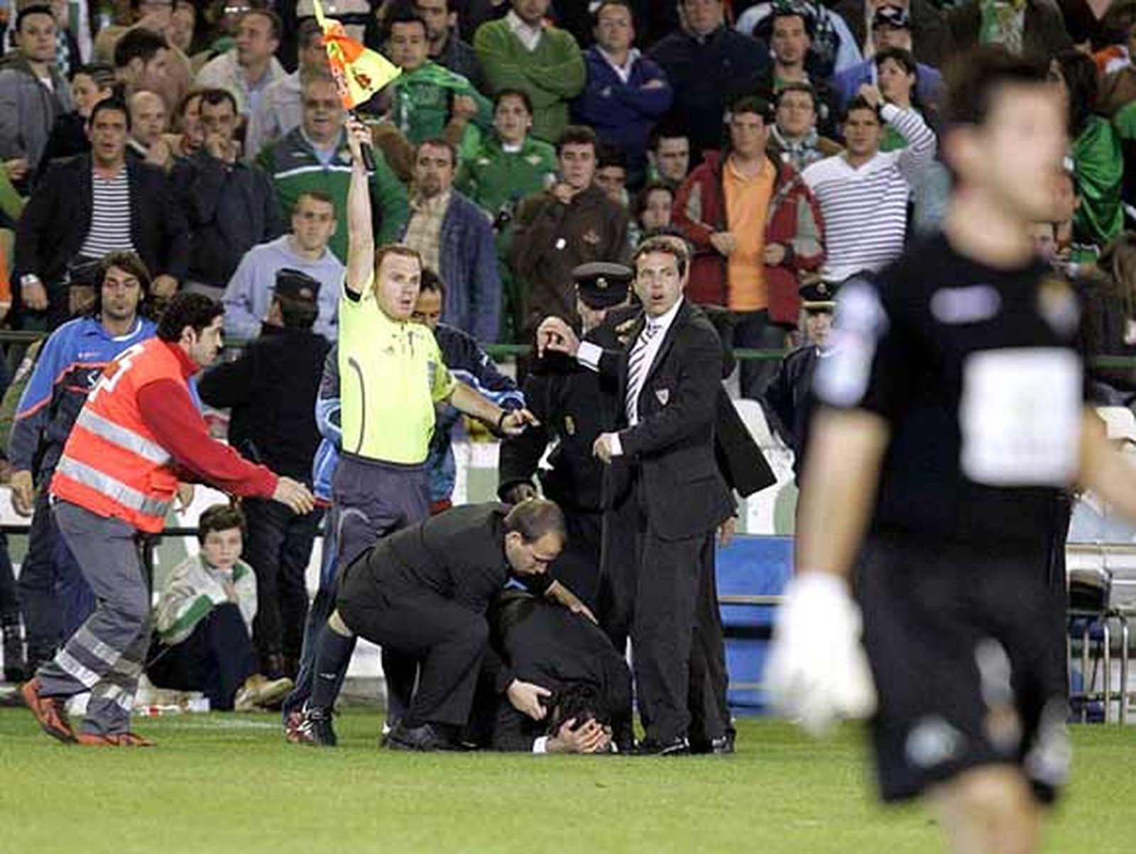 El entrenador del Sevilla, tras recibir el botellazo en el partido Betis-Sevilla de cuartos de final de la Copa del Rey, disputado el 28 de febrero de 2007 en el estadio bético, perdió el conocimiento, fue atendido en el mismo campo y luego en una clínica de Sevilla, donde pasó la noche en observación.