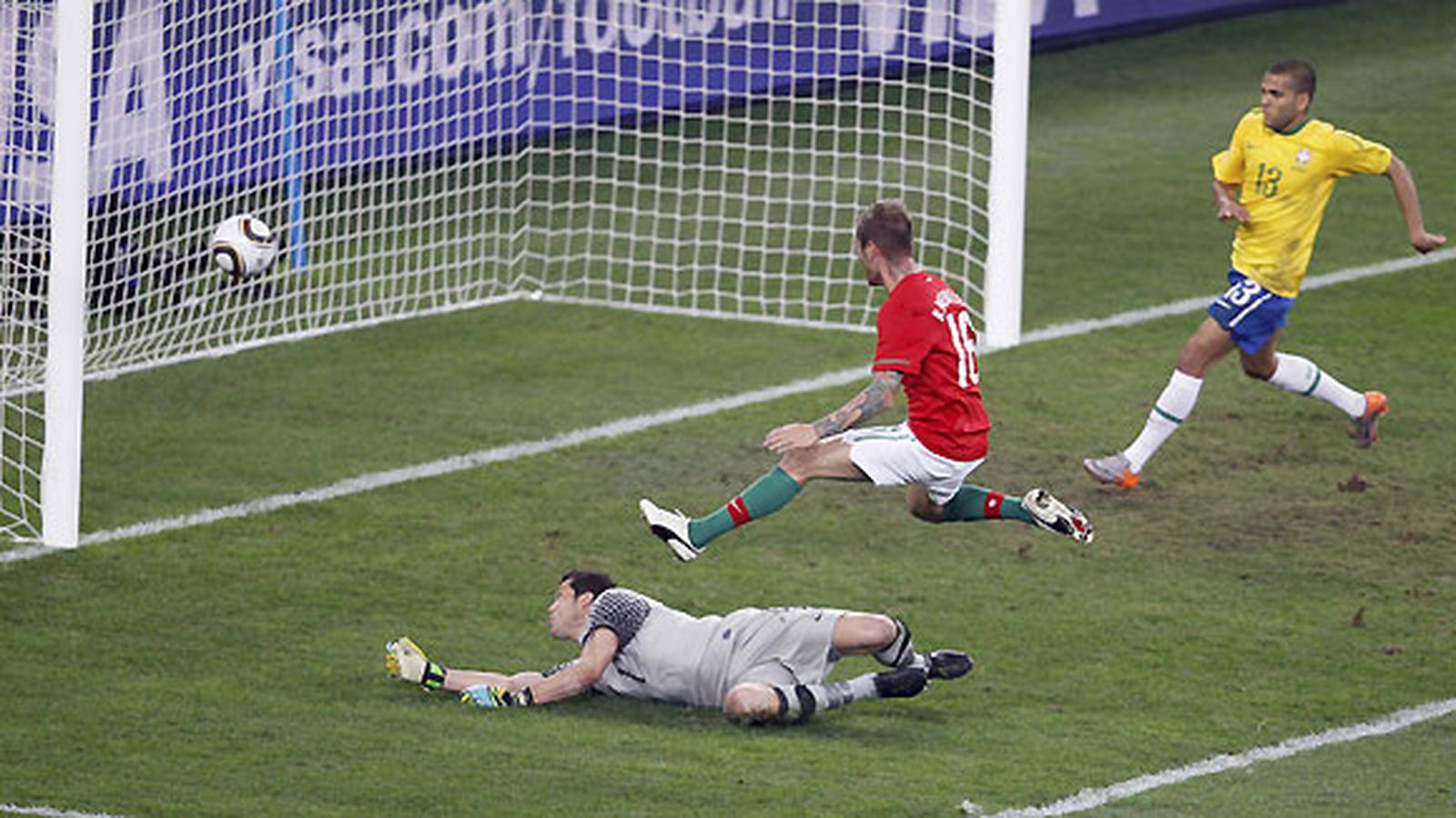 Portugal, encerrada como... –pongan el calificativo más severo que se les ocurra–, tuvo sin embargo las ocasiones más claras del aburridísimo segundo acto. Además del referido remate de Meireles que Julio César logró desviar, Danny perdió el pulso con el meta en el descuento justo después de que Lucio golpeara claramente el balón con el brazo.