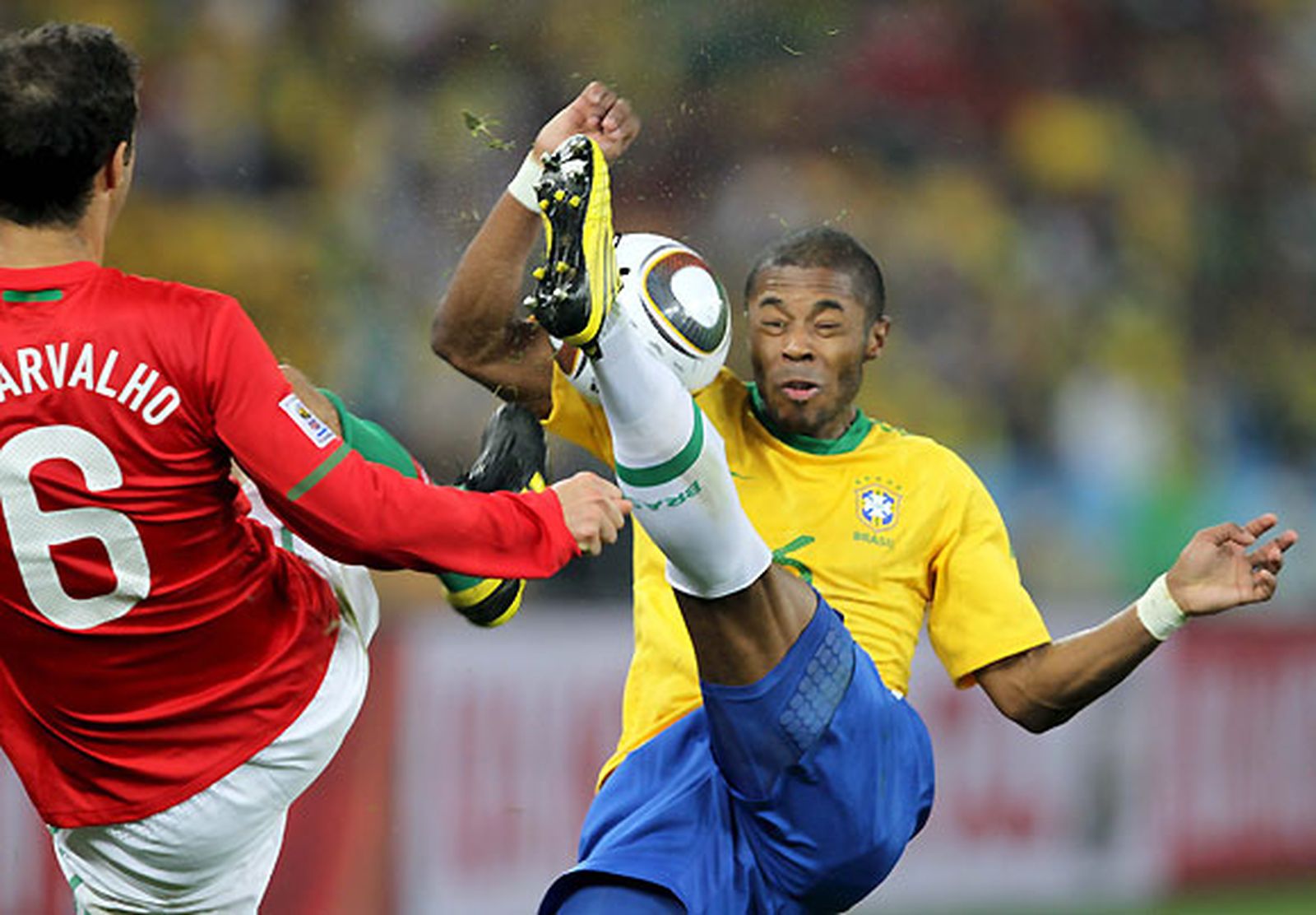 Portugal y Brasil silenciaron las vuvuzelas, pero no por admiración sino porque el público acabó silbando la rancia segunda mitad, un auténtico suplicio muy lejos de lo que cabía esperar. Portugal, dado lo abierto del grupo de España, no arriesgó lo más mínimo y se conformó con el empate desde el primer minuto. A fin de cuentas, no ha recibido ni un solo gol concluida la primera fase (como Uruguay) y ha demostrado tener por fin un portero de garantías. Queiroz buscó fijar a Maicon con la entrada de Duda –lo logró– y no dudó en sacrificar a Cristiano Ronaldo en la tarea más ingrata posible: correr y correr tras el balón como único atacante de una nube de defensas.