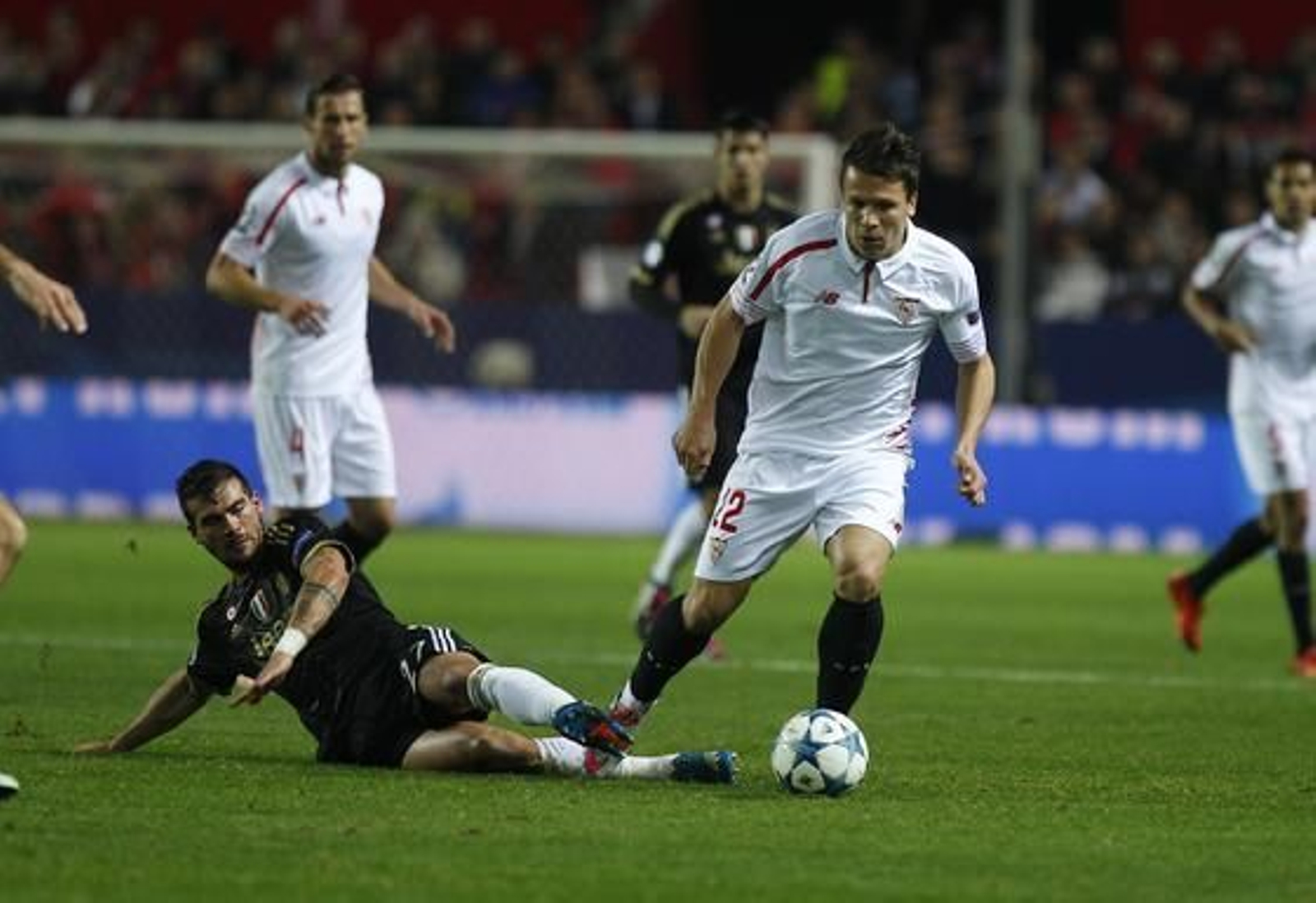 El Sevilla derrota a la poderosa Juventus y jugará la Europa League gracias a la remontada casera del City, a un gol de Llorente y a unos soberbios Banega y Sergio Rico.