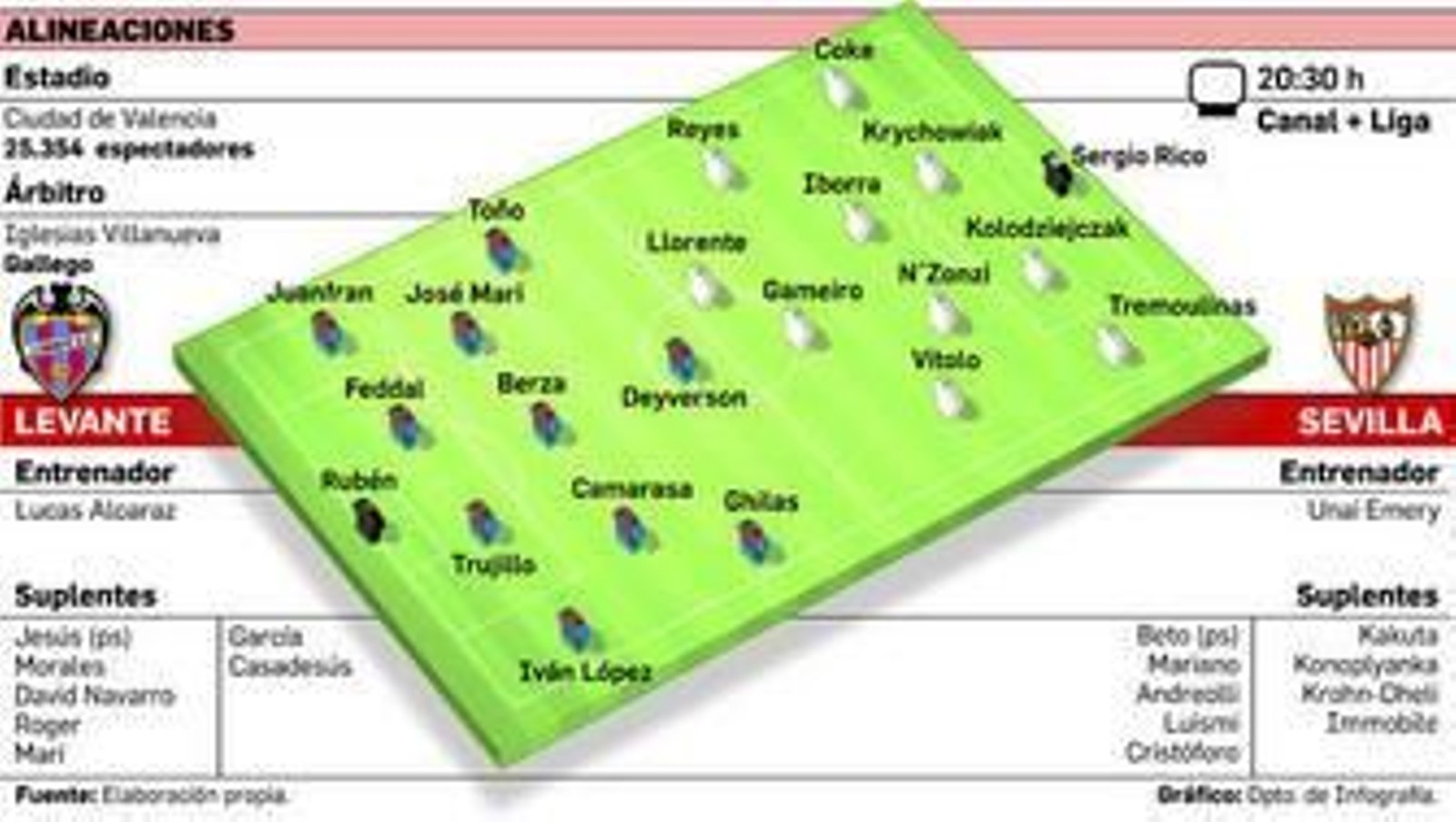 Tampoco hay que perder de vista a la hora de la elección de los futbolistas el marcado estilo del rival. El Levante es un equipo con el sello de Lucas Alcaraz, un entrenador que logra que sus equipos interpreten partidos incómodos, muy parados, con poco balón raseado y bastante contacto. Emery, lógicamente, lo pone en una balanza todo. Ha habido partidos de selecciones y tiene a gente cargada, pero la plantilla se hizo con suficiente calidad como para que los que han estado entrenándose en Sevilla puedan ganar en la inmensa mayoría de los campos de Primera División. Banega fue el único que no llegó con garantías de haber descansado el mínimo exigible y prefirió que se quedara cargando pilas para el martes. En cuanto al resto, que nadie dude que Emery va a ir con todo en una plaza en la que no es nada fácil ganar y en el que ha visto mucho fútbol. Sin ir más lejos, estuvo presente en el primer partido del Levante en casa dos días después del debut liguero del Sevilla en Málaga. Aunque algo condicionado por la expulsión del granota Simao a los cinco minutos de juego de aquel Levante-Celta (1-2), el técnico vizcaíno pudo tomar alguna referencia de lo que se encontrará hoy, aunque es circunstancia le impidió ver una medida real en cuanto a comportamiento como equipo. No obstante, todo está estudiado hoy en el fútbol y el cuerpo técnico tiene suficientes referencias sobre el rival.