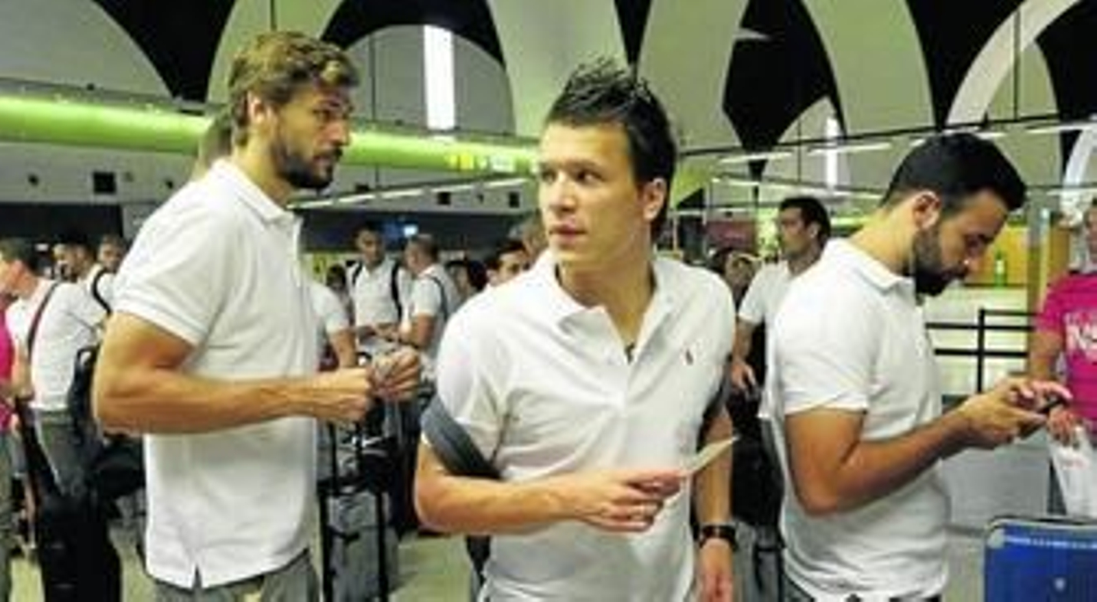 Llorente y Konoplyanka aguardan, con las tarjetas de embarque en la mano, para pasar el escáner en San Pablo.