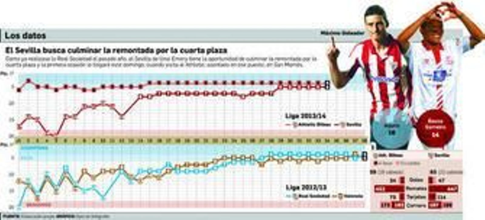 La espectacular racha del equipo sevillista, con nueve victorias en los diez últimos encuentros ligueros -a lo que añade sus remontadas en la Liga Europa- lo han disparado en la clasificación hasta dejarlo a sólo tres puntos del equipo dirigido por Ernesto Valverde. De esta forma, el duelo del próximo domingo en San Mamés se ha convertido en un pulso por la Champions en toda regla, otorgándole una emoción inesperada a la lucha por la cuarta plaza, una situación similar a la que se vivió el pasado año entre la Real Sociedad y el Valencia.