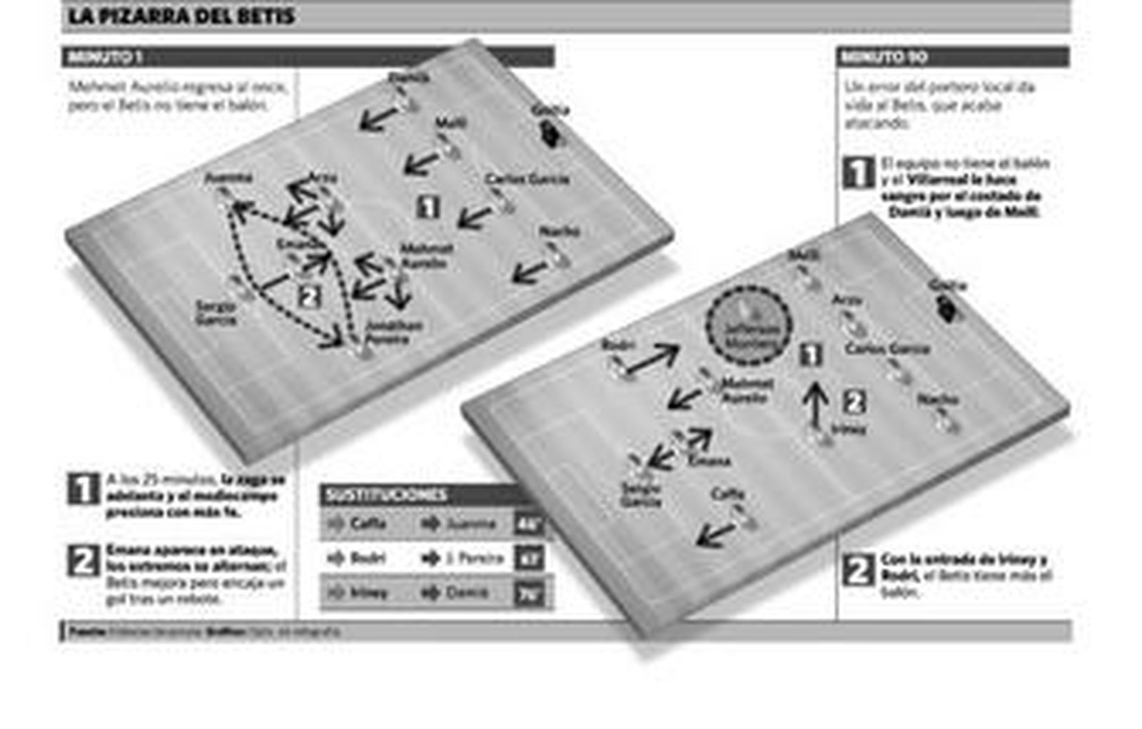 Las posesiones de balón son idénticas en los equipos, ya que se alternan, y el minutaje no siempre es influyente. La clave reside en la zona donde se recupere la pelota, en mantenerla lejos de la portería propia y, con ello, estar más cerca siempre de la rival. Mehmet Aurelio y Arzu garantizan un buen trato del balón, pase en corto y pocas pérdidas, pero si los rivales están aún más dotados para ese fútbol, como los del Villarreal, rara vez lo ganan. En días así, al Betis se le ve a confundido, impotente. Y se desordena.