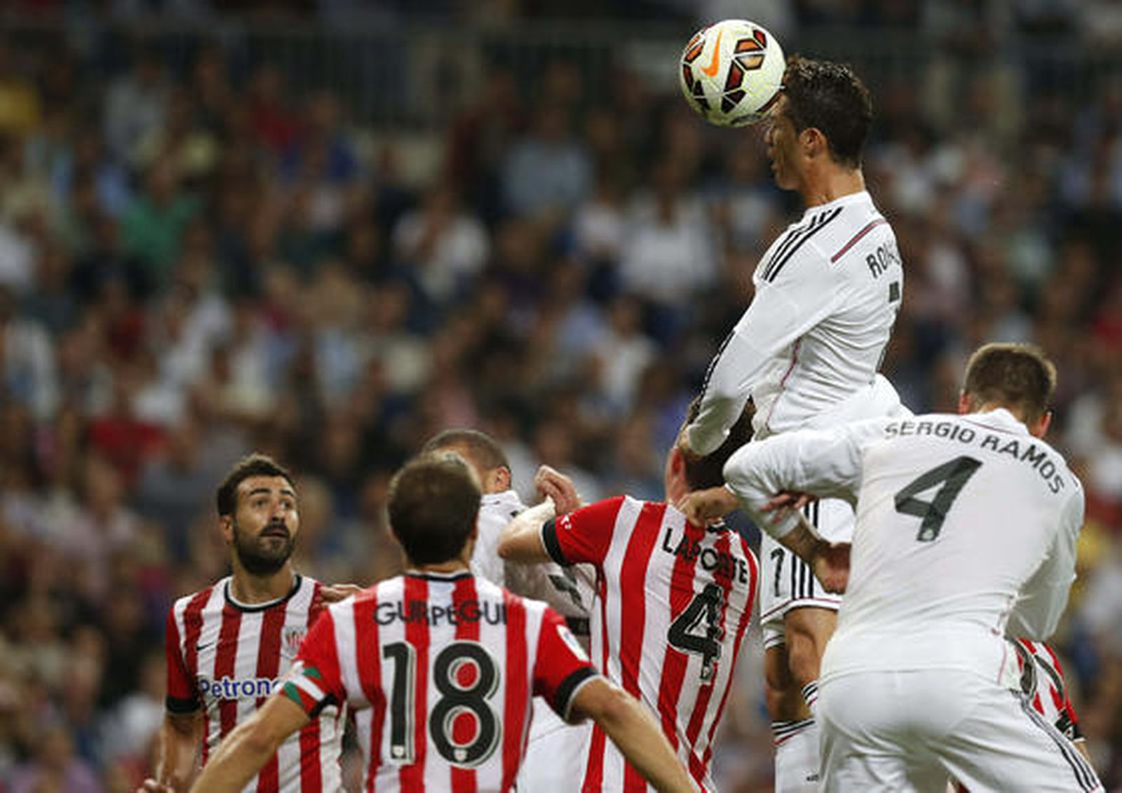 Estaba a gusto el Real Madrid, especialmente con el undécimo gol del astro portugués. Acusó el Athletic el mazazo y el cuadro de Carlo Ancelotti se movió a su antojo algunos minutos. Con combinaciones rápidas especialmente por las bandas, que dejaron en evidencia las dificultades de Óscar de Marcos con Marcelo y de Balenciaga con Bale. El Real Madrid no aprovechó su prometedor arranque. Decayó su ritmo y el Athletic empezó a salir de su guarida. Tomó el balón y puso a prueba a la zaga blanca en varios saques de esquina sin culminación.