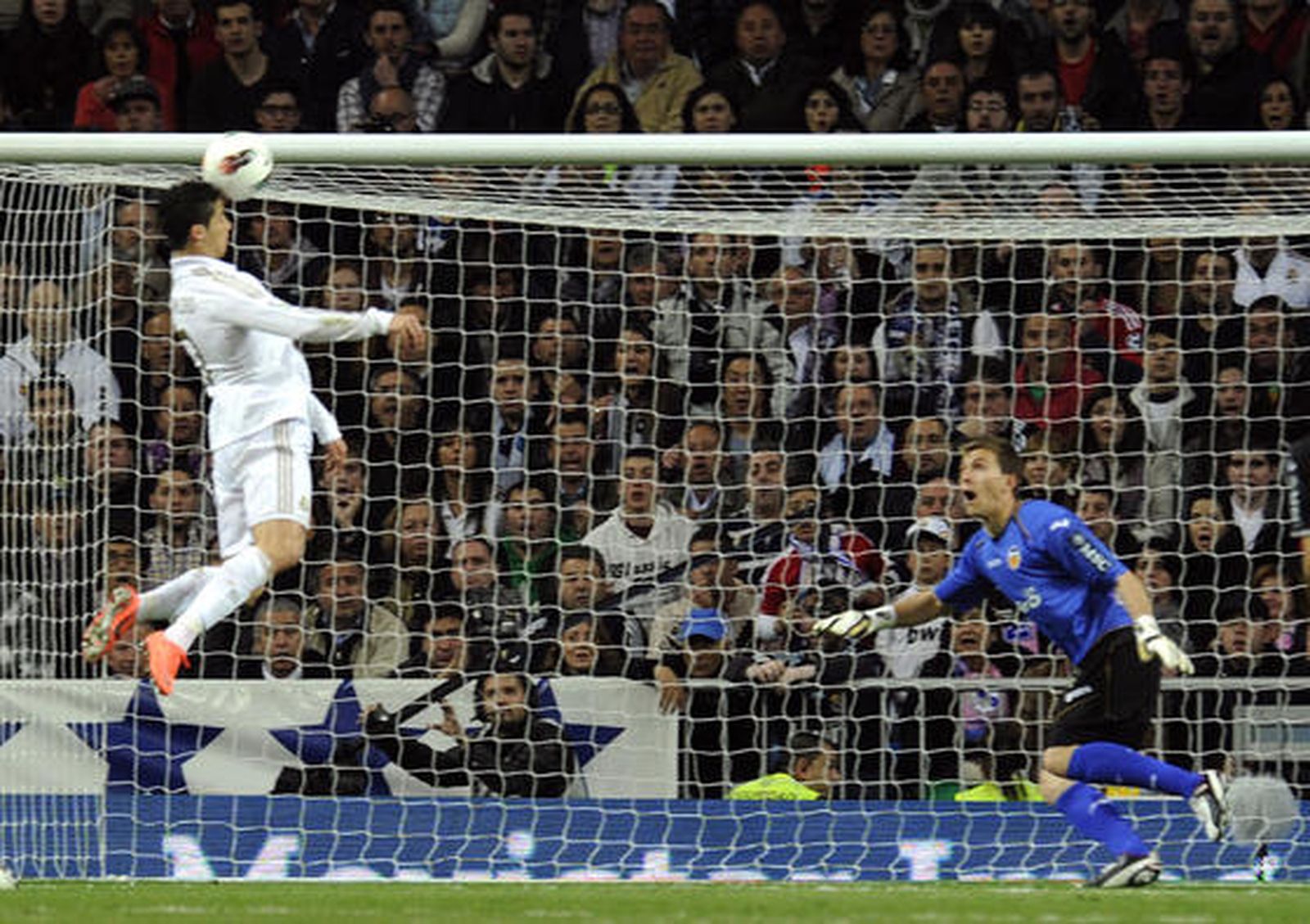 El primer balón que tocó el extremo argentino dejó a Cristiano ante Guaita, que sacó una mano abajo decisiva. El Real Madrid atacaba desde todos los frentes pero le faltaba el gol de su líder. Vio como la ansiedad se comenzaba a apoderar del equipo. El nerviosismo representado en Pepe, que en una de sus idas de cabeza, pegó una patada desde el suelo a la rodilla de Arbeloa pensando que era Piatti el que le levantaba del césped. El paso de los minutos y la personalidad del Valencia incrementaban el nerviosismo madridista. Tino Costa soltaba un latigazo de 35 metros que repelió el travesaño. Fortalecido por el centro, el conjunto valencianista empujó a su rival a explotar las bandas. El juego del Real Madrid se redujo a Di María. Tan brillante en unas acciones como locuaz en otras.