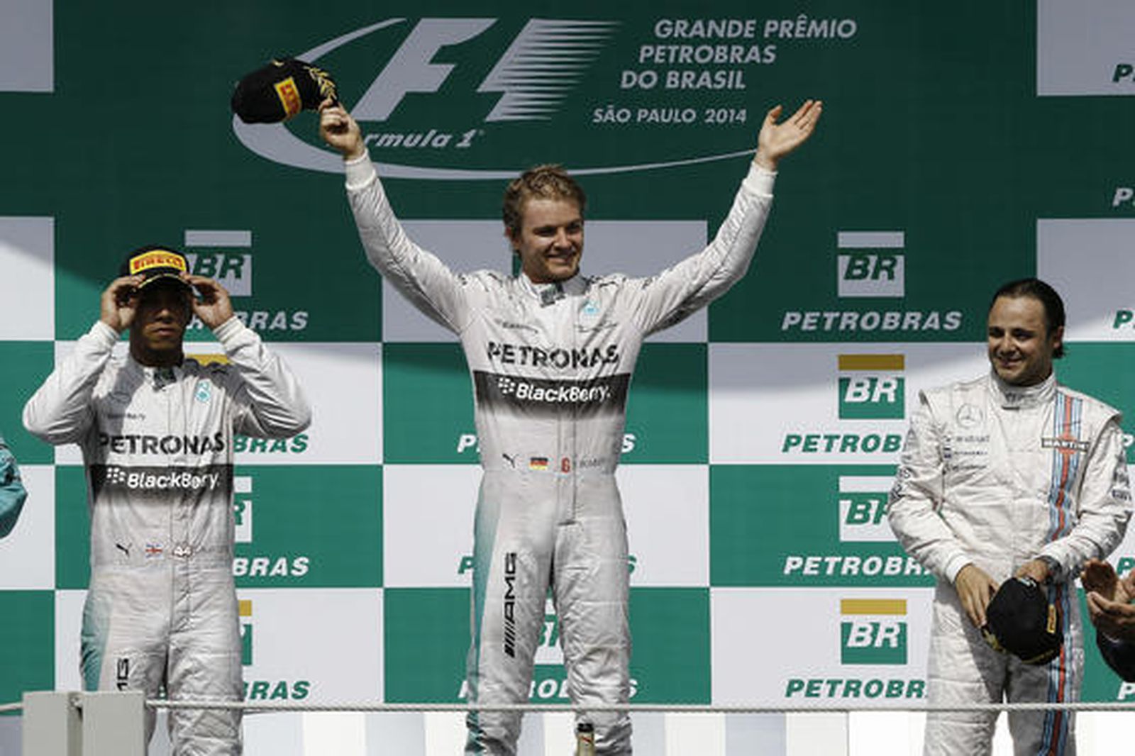 Rosberg acabó en Interlagos con la racha triunfal de Hamilton, que se había impuesto de manera consecutiva en la cinco últimas carreras: Italia, Singapur, Japón, Rusia y Estados Unidos. El podio lo completó, ante su público, el brasileño Felipe Massa (Williams-Mercedes). El paulista supo sobreponerse a una penalización de cinco segundos de parada por superar el límite de velocidad en el la calle de garaje en su primera parada para lograr su segundo podio del año, tras el que obtuvo en el Gran Premio de Italia. Massa también tuvo un error en su segunda parada que le costó algunos segundos, cuando se detuvo por equivocación frente al garaje de Mclaren, situado justo ante del de su escudería.