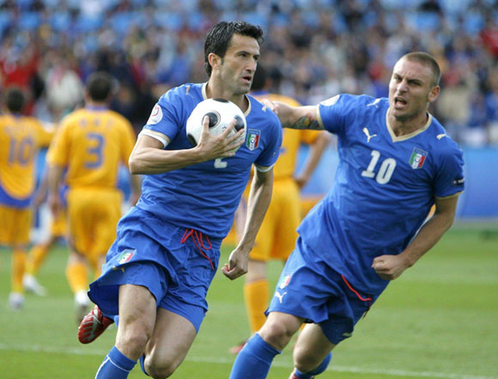 Pero la ocasión más clara llegó en otra falta lanzada por Chivu en el 19. El central del Inter centraba una pelota desde la derecha, la defensa dejaba botar el balón en el área y ésta se estrellaba en el palo izquierdo de Buffon. Italia sufría, pero, sin que sirva de precedente, seguía apostando por el ataque.