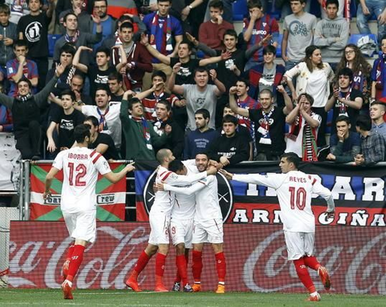 El Sevilla por delante, y pronto, como últimamente, y a la contra con delanteros como aviones. Ocurre que el Eibar no defiende bien una falta que saca Reyes, Arribas no llega pero hace dudar a Irureta y Bacca aprovecha para marcar a placer. Veinte en Liga ya el colombiano y apenas 15 minutos jugados.