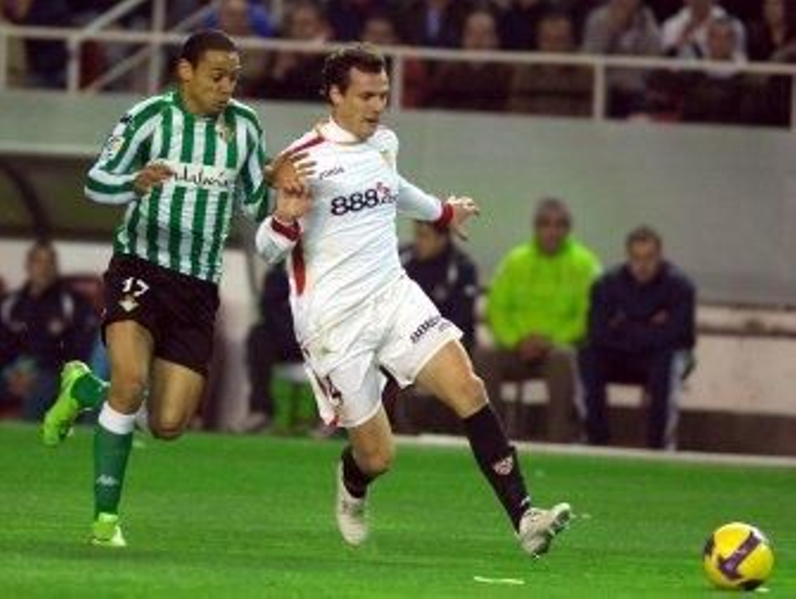 A partir de esa jugada se equilibró el choque, porque el conjunto de Manolo Jiménez empezó a encontrar a sus extremos Jesús Navas y Diego Capel y el meta portugués Ricardo Martins también empezó a trabajar.