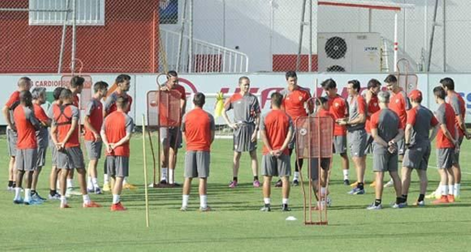 Junto a los jugadores de la primera plantilla, Emery ha dispuesto que se entrenen seis canteranos: los porteros David Soria y Juan Soriano, los defensores José Antonio Martínez y David Carmona, el centrocampista Toño Cotán y el delantero Juan Muñoz.