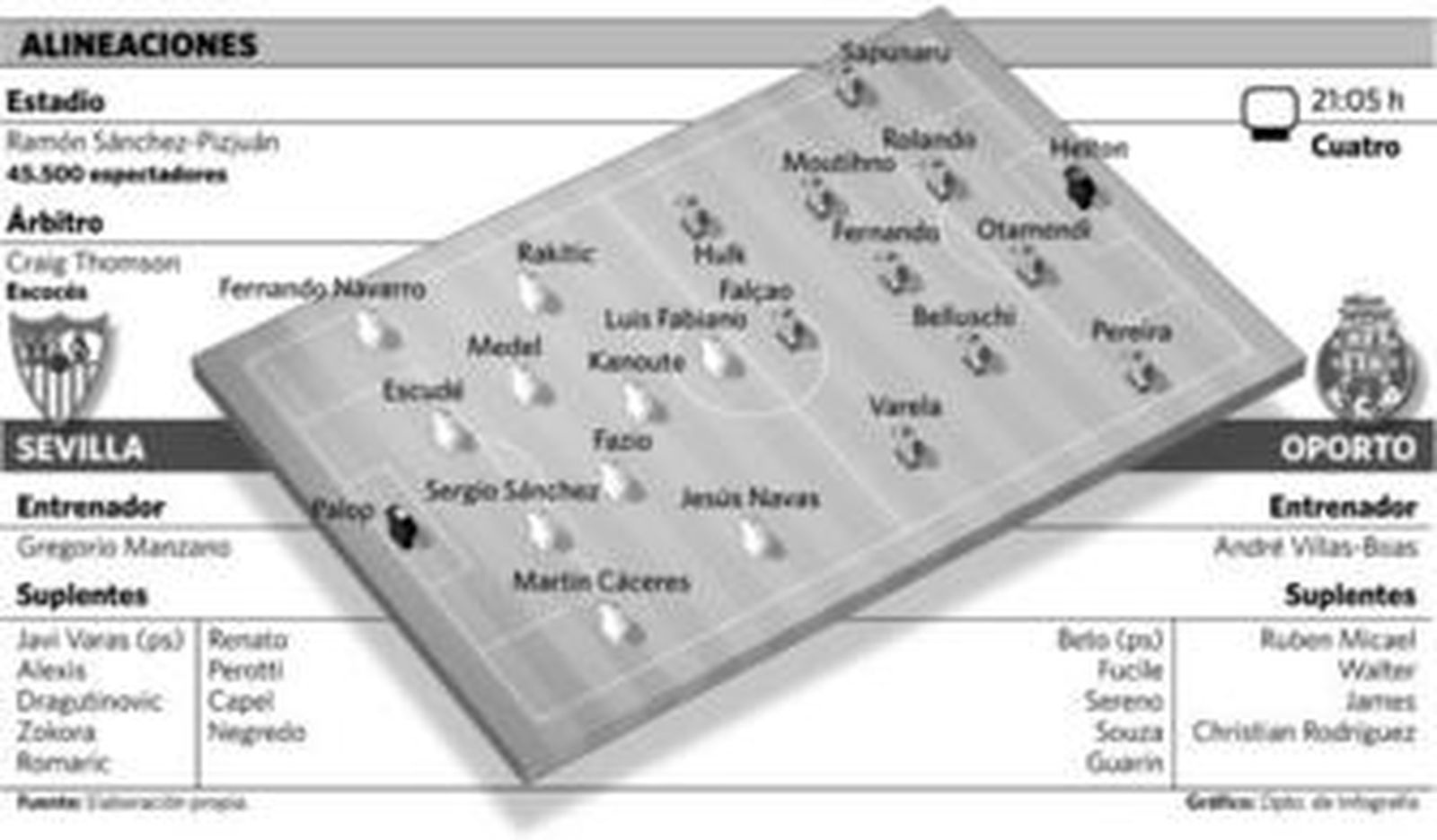 El pedigrí del rival, por tanto, no puede imponer más respeto, pero es que su presente también le sirve como credencial para que el Sevilla lo mire con recelo. Después de una campaña bastante mediocre, en la que se quedó fuera de la Champions tras muchos años, el equipo blanquiazul se transformó. Le dio las riendas a Andre Villas-Boas, un técnico muy joven que parece un clon de José Mourinho cuando éste se hizo un nombre en el propio Oporto, y no se conformó sólo con eso, sino que también se atrevió a vender a algunos buques insignia del calibre de Bruno Alves o Raúl Meireles. Antes ya se habían marchado Lucho González o Lisandro López. Palabras mayores, sin duda, pero esa reconversión tan necesaria en todos los equipos, incluido el Sevilla, le ha servido para tomar impulso hacia adelante. Porque el Oporto ha sabido fichar y contrató a Moutinho, del Sporting, para acompañar en el centro del campo a un Belluschi que llegó desde Olympiakos para suplir a Lucho González, como ya hiciera con Falcao por Lisandro en la delantera. En definitiva, un entramado diferente que ahora funciona a la perfección.