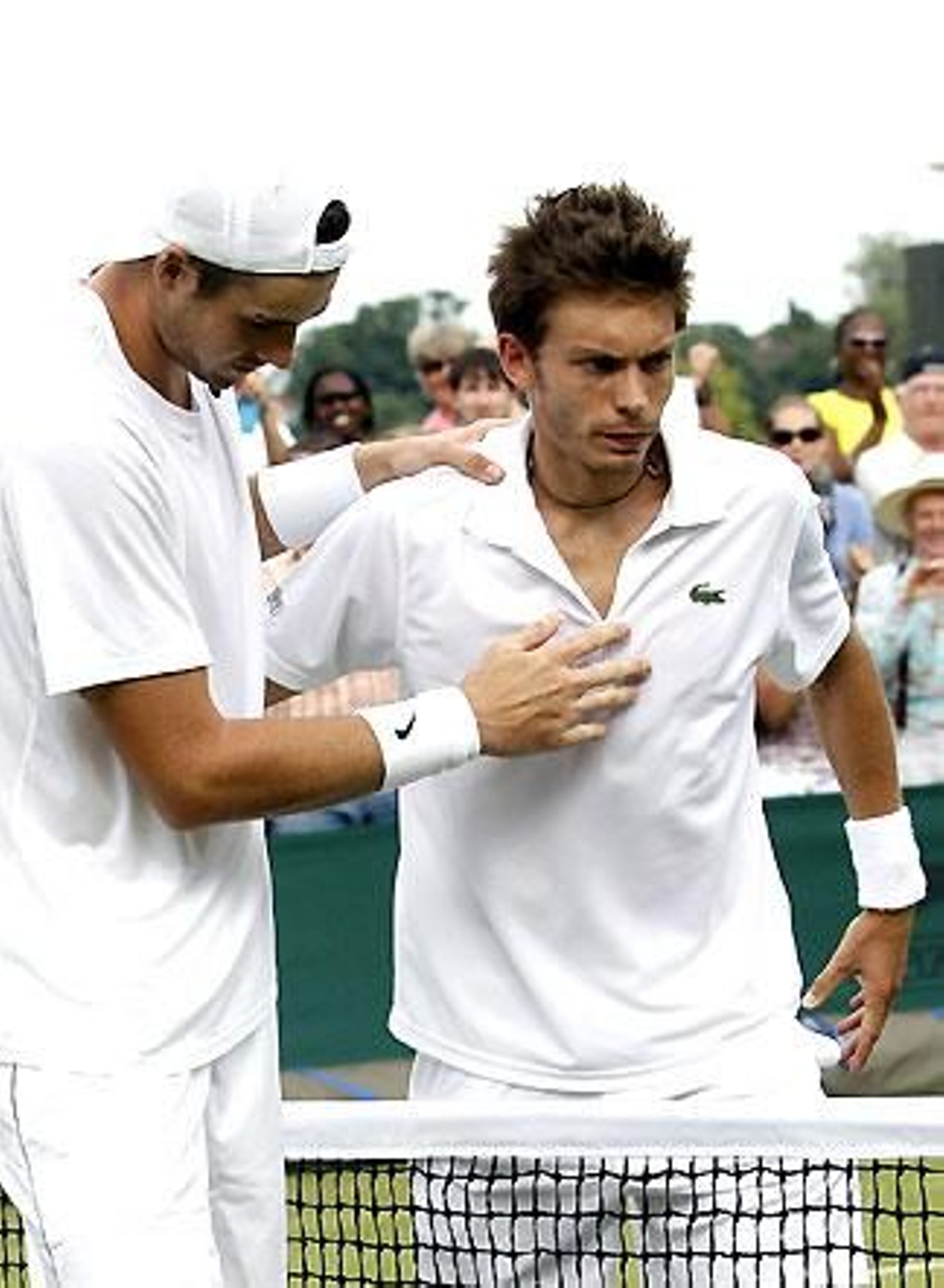 Isner, una torre de 2,08 metros, se desplomó en el raleado césped del All England, recibió un abrazó de un serio Mahut y los aplausos de John McEnroe, Tracy Austin y Jimmy Connors, presentes en el estadio. Ambos jugadores, más el árbitro sueco de origen marroquí Mohamad Lahyani, recibieron unos presentes en la cancha, y después posaron junto al tablero electrónico. La gente frenaba a Lahyani para tomarse fotos como si fuera una estrella de rock. "Yo viajo en clase Turista. Para mí sentarme siete horas en la cancha no es nada", dijo Lahyani. "Cuando ayer entré al vestuario y recibí las felicitaciones de mis colegas me di cuenta de la dimensión mundial que había alcanzado este partido", dijo Isner.