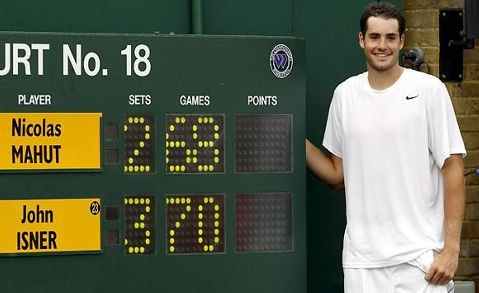 El estadounidense John Isner se ha adjudicado ante el francés Nicolas Mahut el triunfo en el partido de tenis más largo de todos los tiempos, dentro y fuera de Wimbledon, de más de 11 horas de duración. El encuentro fue aplazado primero el el martes y después el miércoles, por falta de luz. El marcador señalaba 4-6, 6-3, 7-6 (7), 6-7 (3) y 59-59 en el último set, que se prolongó durante 426 minutos, cuando los jugadores abandonaron la pista el miércoles, sin visibilidad para continuar. El partido ha continuado la tarde del jueves, en la que finalmente se ha impuesto el estadounidense por un marcador 70-68 en el quinto set.