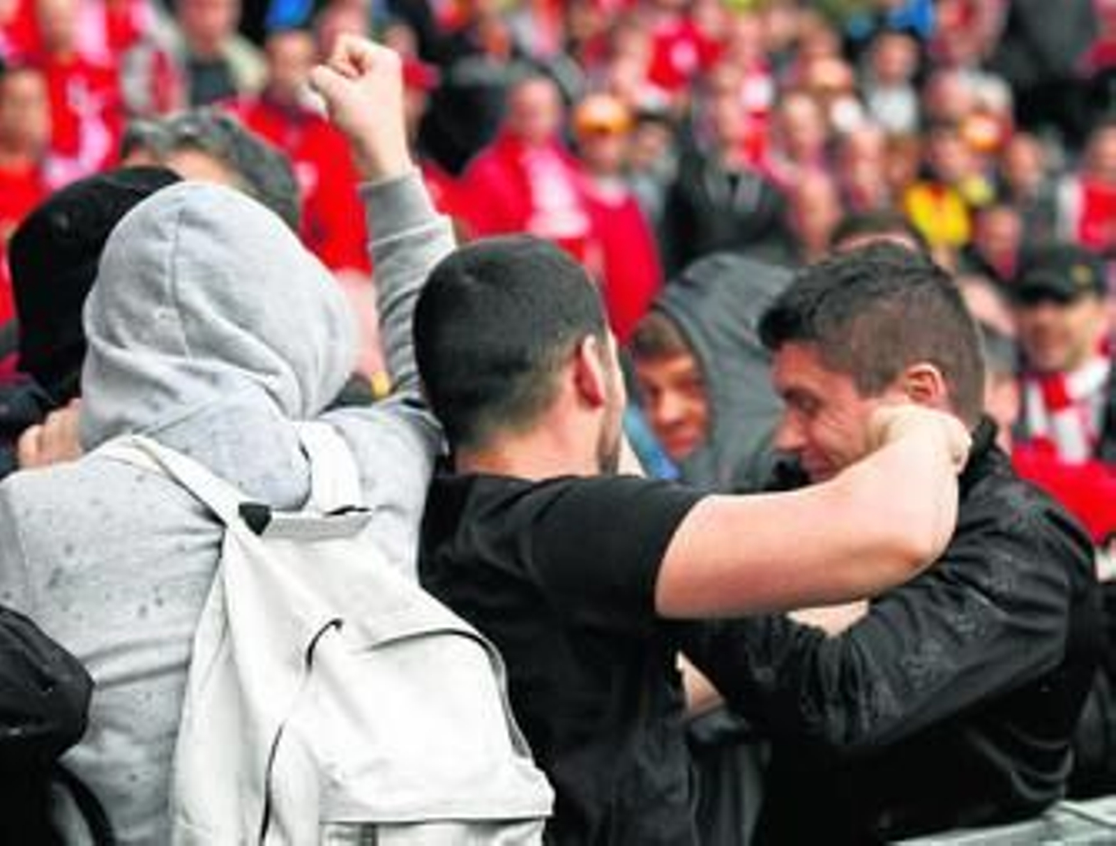 El sevillismo redobló su entrega a su equipo ante la manifiesta mayoría de ingleses y el himno del Centenario acalló el "You'll never walk alone"