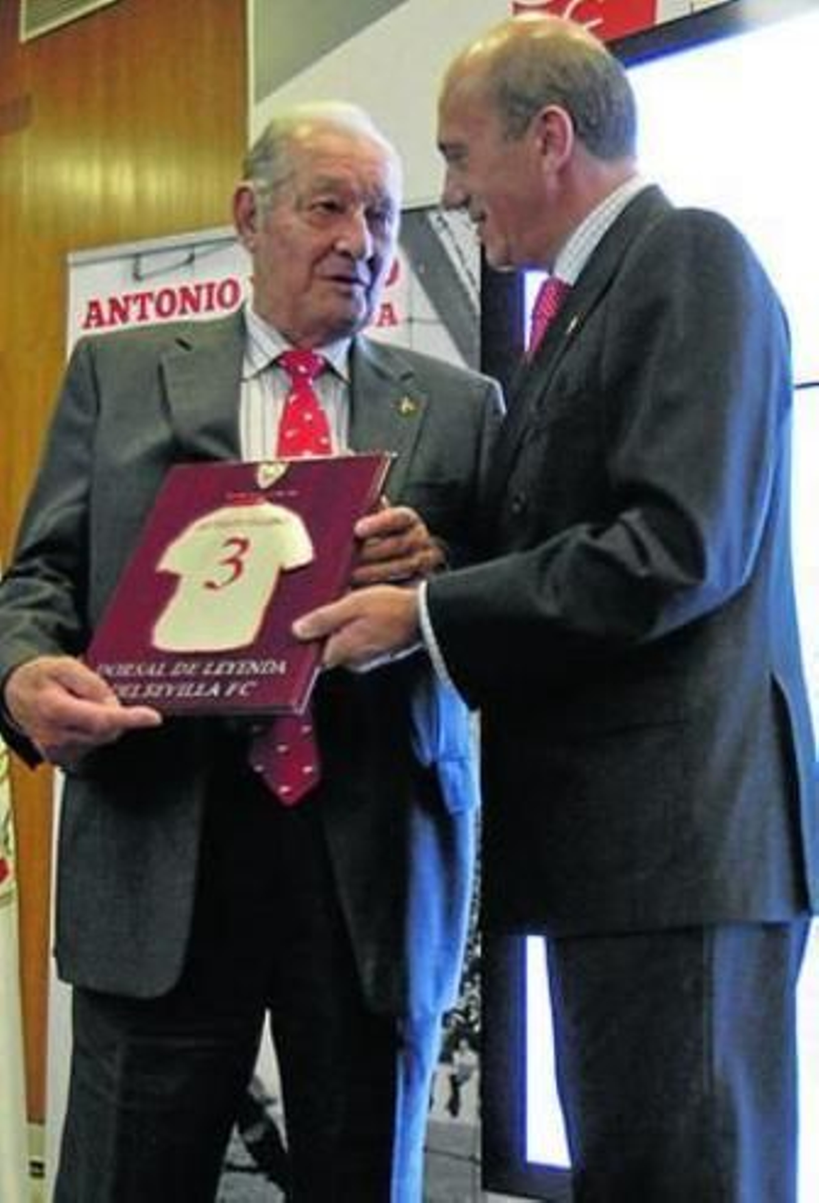 El Sevilla reúne a veteranos, ex atléticos y ex béticos, incluido Luis Aragonés, para "darle el lugar que merece en la historia" al mítico lateral, según Del Nido, en un acto pleno de nostalgia.