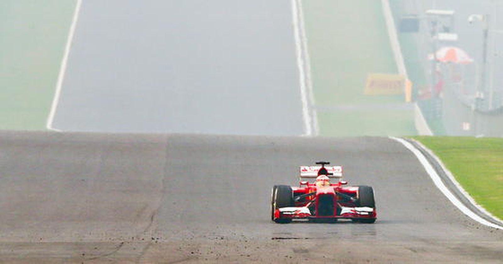 El alemán había partido desde la pole con los más rápidos y degradables neumáticos blandos, como la mayoría de pilotos, y, tras comprobar el problema del asturiano, entró enseguida en boxes para cambiar al compuesto medio y tener un ritmo más constante. Desde la octava posición de parrilla, Alonso necesitaba una heroica en la India pero en la primera curva del circuito su monoplaza chocó con dos coches y su estrategia da arrancar con medios quedó fulminada con una parada obligada para reemplazar el dañado alerón delantero. El resto de la carrera fue pesadilla para el bicampeón mundial español, que nunca olió los primeros puestos de la clasificación.