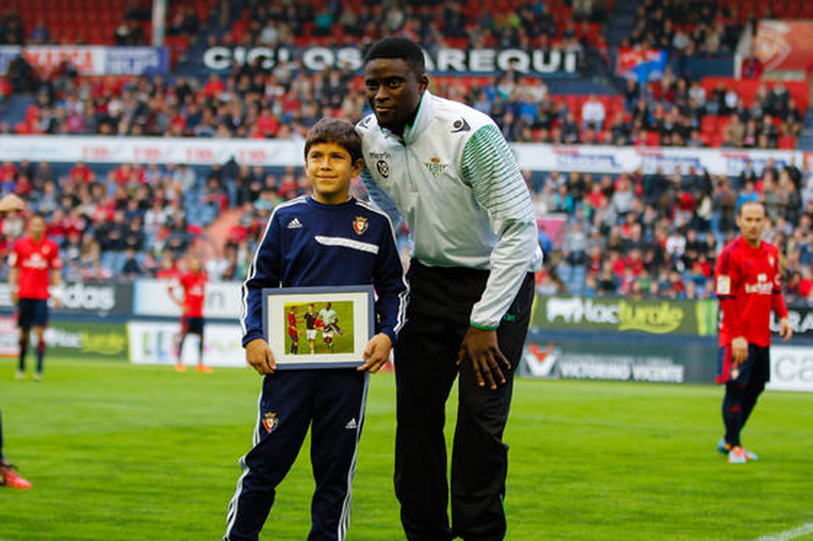 N'Diaye fue homenajeado por el joven Ibai Cadena y toda la grada de El Sadar antes del choque. Rubén Castro, 91 goles ya en verdiblanco.