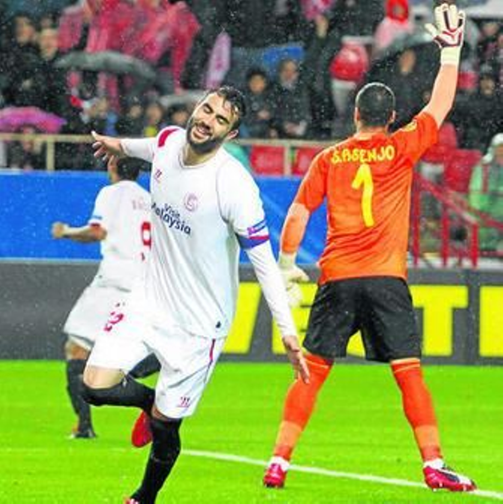 Porque el Sevilla, una vez más, supo adaptarse a la perfección a lo que le demandaba esta segunda cita de los octavos de final. Si el camino escogido en Villarreal hace justo siete días había sido el correcto para acabar con una sonrisa de oreja a oreja, ¿qué razón había para cambiarlo? Ninguna, es evidente, y ése sería el razonamiento de Unai Emery a la hora de plantear la estrategia junto a su cuerpo técnico. Así que sólo había que combinar las piezas para tratar de que el ausente Krychowiak no se echara en falta, lo cual, sin duda, es mucho pedir. Pero en esa baile de cromos para que todo continuara de la misma manera tenía cabida Carriço, el comodín del grupo. El portugués se fue al centro junto a Mbia para que Kolodziejczak, ausente en la lista en El Madrigal, se encargara de cubrirle las espaldas. De manera excelente, por cierto, tanto en lo referente al central como al ayer medio centro defensivo. Arriba todo continuaba igual con Iborra tratando de peinar todos los balones directos que le llegaran y el trío de delanteros muy atentos a ello.