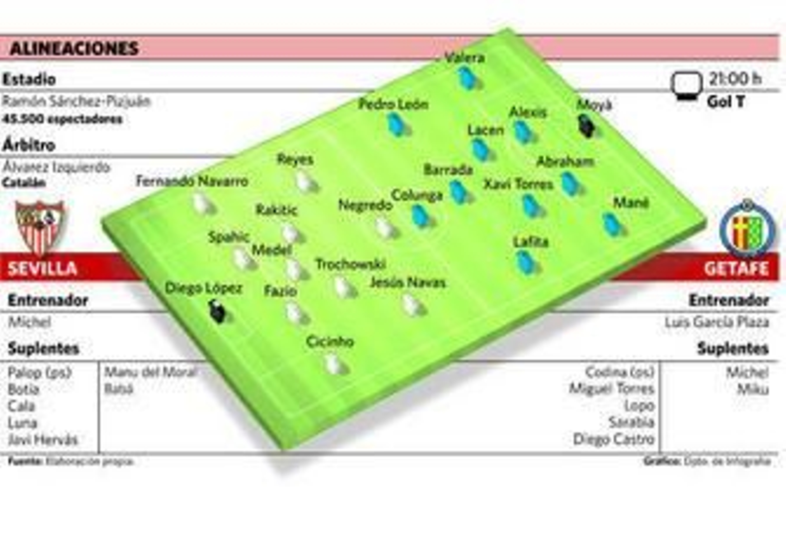Puesta de largo para el Sevilla 2012-13 con multitud de incógnitas respecto al nivel real que pueda ofrecer el conjunto nervionense. Será el Getafe el encargado de establecer si este equipo será carne o pescado, si merodeará por la zona alta de la clasificación, incluso con opciones de pelear por volver a la Liga de Campeones, o, por el contrario, tendrá que esforzarse por adicionar a su casillero lo antes posible esos 43 puntos que muchas veces se consideran necesarios para huir de los puestos que queman por abajo. Son, sin duda, los dos casos más extremos y en medio hay muchos matices, pero la realidad es que no se sabe muy bien qué se puede esperar de este nuevo Sevilla.