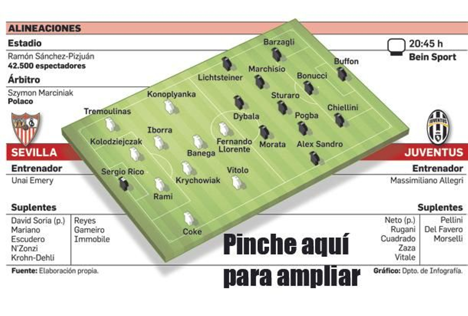 Emery ha elegido un grupo de futbolistas en los que ha depositado su confianza y tampoco parece muy decidido a realizar esas rotaciones que tan buenos resultados le dieron en los dos anteriores cursos. De cualquier forma, además de Banega, Coke, Tremoulinas, Iborra y Fernando Llorente tienen muchas opciones de entrar como titulares en esta cita frente a una Juventus que sí comparece con numerosas ausencias por problemas físicos.