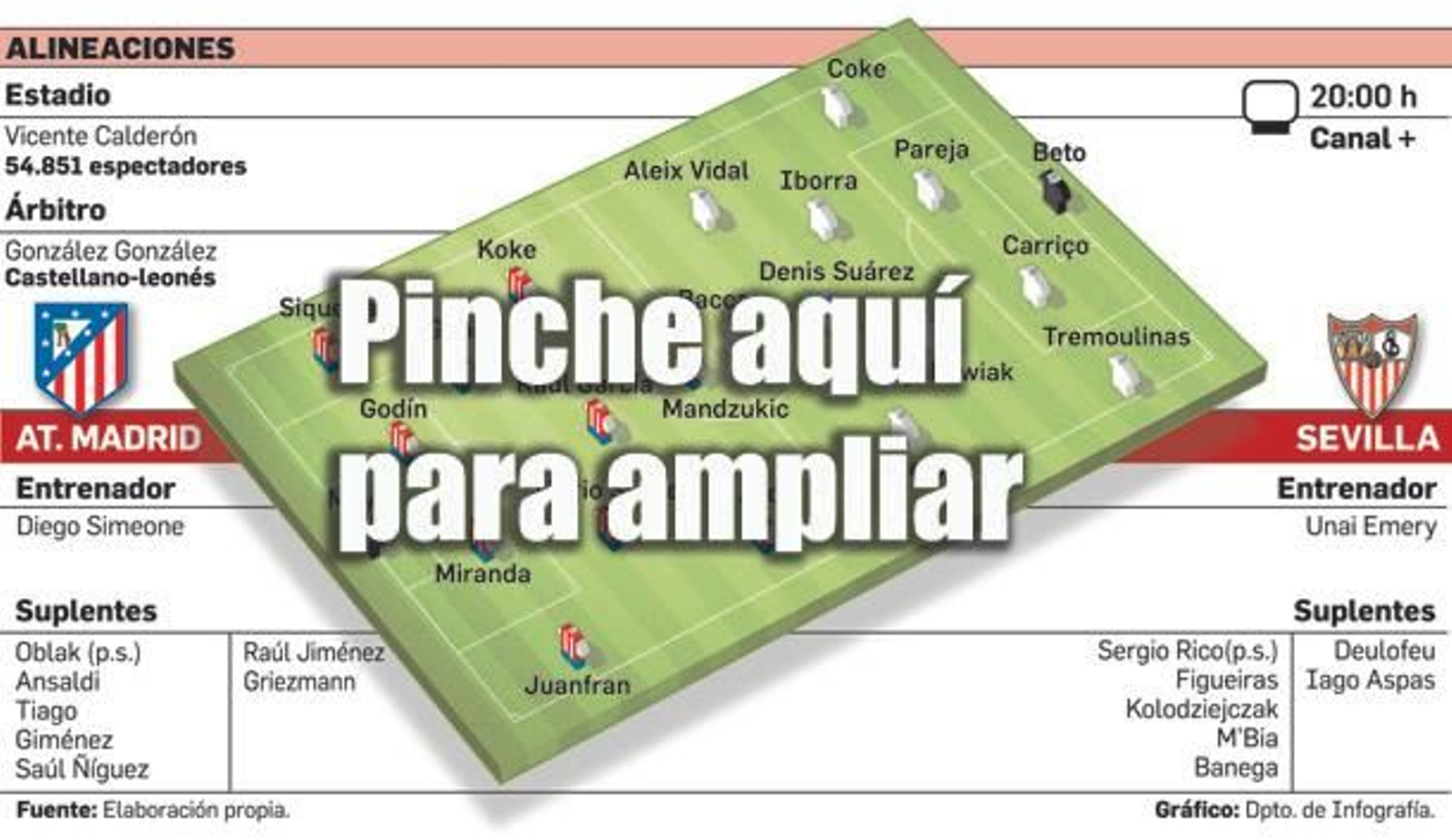 No estarán ya ni Rakitic ni Diego Costa, pero ambos equipos se han reforzado bien y las fuerzas estarán equilibradas. En el Sevilla, que la pasada campaña puntuó en este estadio, hay gente que está llamando fuerte a la puerta de la gloria futbolística como Denis Suárez, Deulofeu también aunque con él va Emery con pies de plomo, o Krychowiak, un tiarrón de Polonia que desparrama fuerza física, potencia y personalidad a la vez que devora kilómetros en el centro del campo y donde haga falta para equilibrar todo el talento que haya delante. De todas formas, Emery ha conjuntado un equipo muy intenso, la base por ejemplo del último triunfo ante la Real Sociedad, con dos alas que son tan profundos en ataque como sacrificados en defensa. El trabajo de Aleix Vidal y Vitolo, la aportación cuando aparezca de M'Bia... y la referencia siempre presente de Bacca. El Sevilla es un equipo que marca el territorio, con muchos registros en su plantilla y que puede ganar en cualquier campo. La estrategia sigue siendo temible aun sin Rakitic ni Fazio, velocidad, desborde, intensidad... armas como para meter miedo al rival que se ponga por delante.