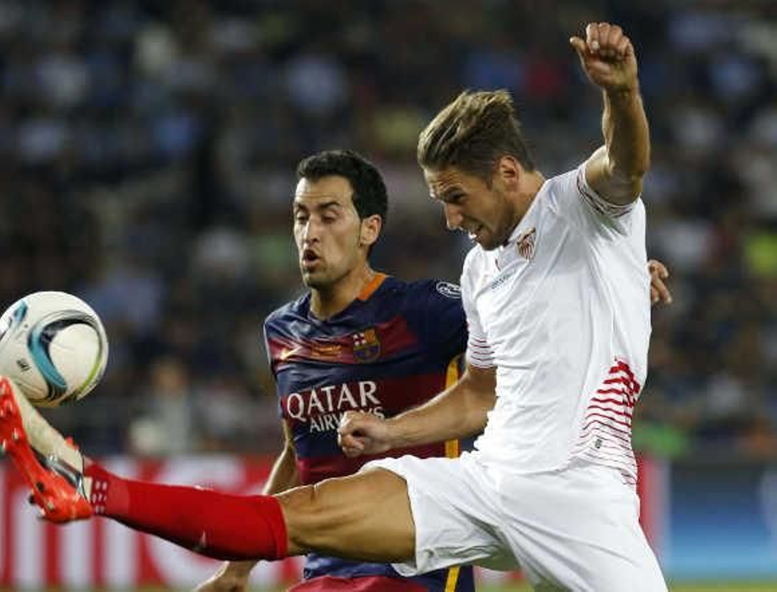 El entrenador sevillista, Unai Emery, inició el partido ante el Málaga con el mismo planteamiento defensivo que usó en la Supercopa: la pareja de zagueros Ramí - Krychowiak. El polaco tiene muchas virtudes cuando juega por delante de la defensa pero cuando le toca jugar de defensa central, se le notan las carencias. Incluso el equipo retrasa sus líneas y defiende metido en el área del portero Beto.