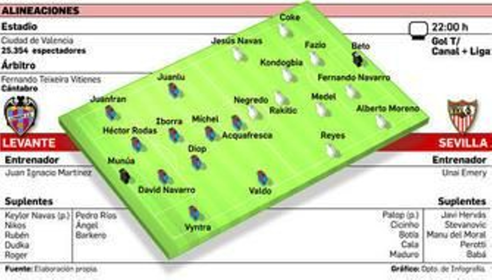 Por ello, y porque esto no admite ninguna demora más, el Sevilla está obligado a comportarse ante el Levante como si estuviera jugando al calor de los suyos, es decir, tomando la iniciativa desde el minuto uno y yendo a buscar al rival a través de una presión adelantada para recuperar la pelota lo más cerca posible de Munúa. Aunque Emery no ha tenido tiempo apenas para preparar el encuentro debido a esa diáspora de internacionales que dejó al técnico vasco sin ocho de sus futbolistas durante la mayor parte de la semana, está claro que ésos deben ser los parámetros marcados a la hora de ofrecer la charla táctica.