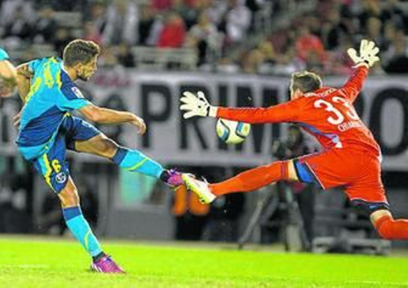 Ya en el tramo final, el juvenil Kaprof se inventó un taconazo en un centro al área que sorprendió a su marcador, Fernando Navarro, y adelantó a River para locura de la hinchada argentina.