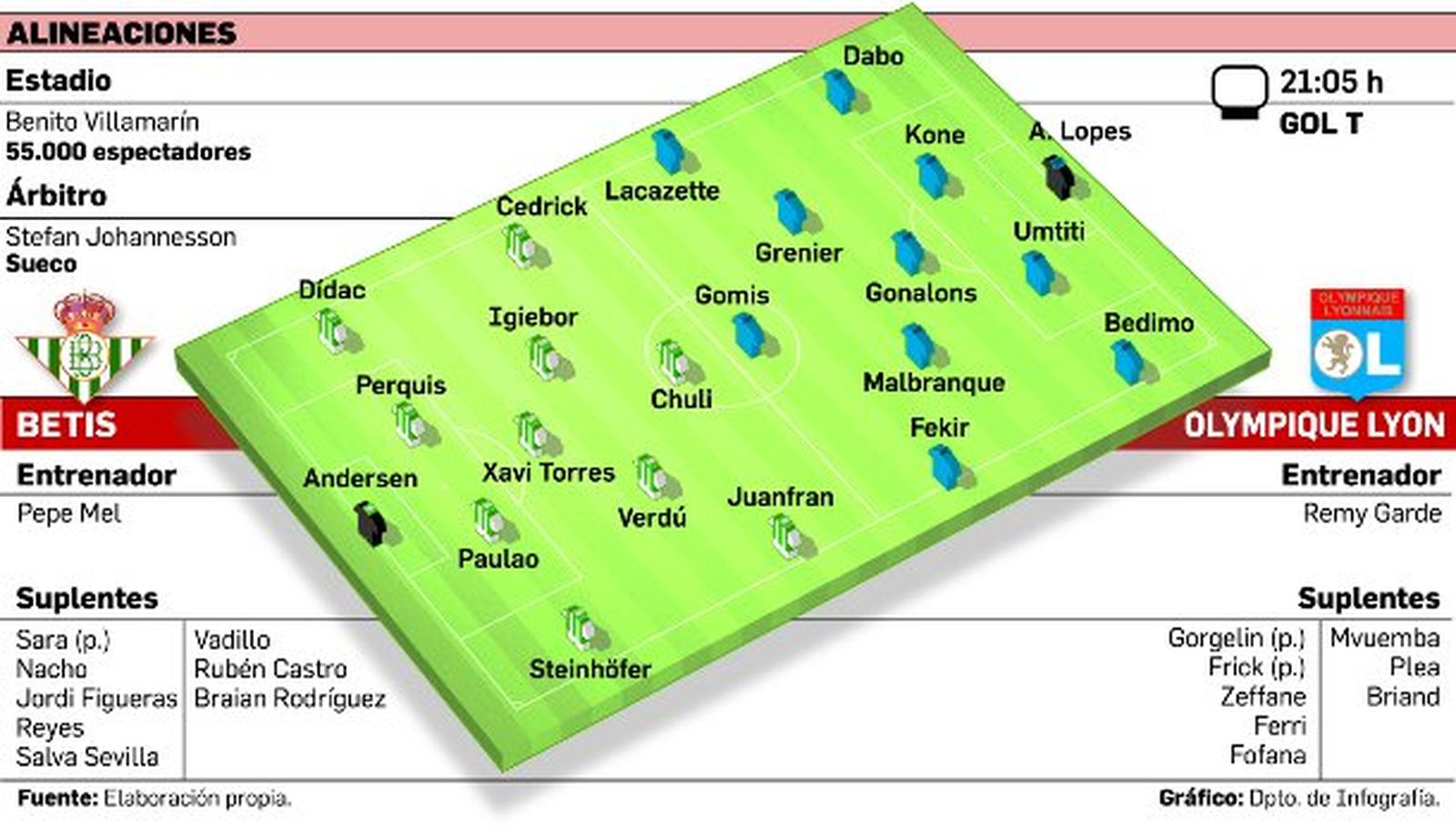 La experiencia, un factor decisivo en estos partidos, también corre del lado lyonés y esa baza también la ha regalado Mel en la previa, aunque haya que puntualizar que este Olympique está formado por muchos futbolistas jóvenes de su cantera y que cuenta, además, con bajas reseñables como Bisevac o Gourcuff, por citar las más reseñables. Es decir, que el Betis asoma a este partido de forma modosa, como emboscado para dar el zarpazo con la ilusión también por bandera.